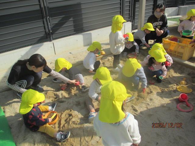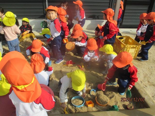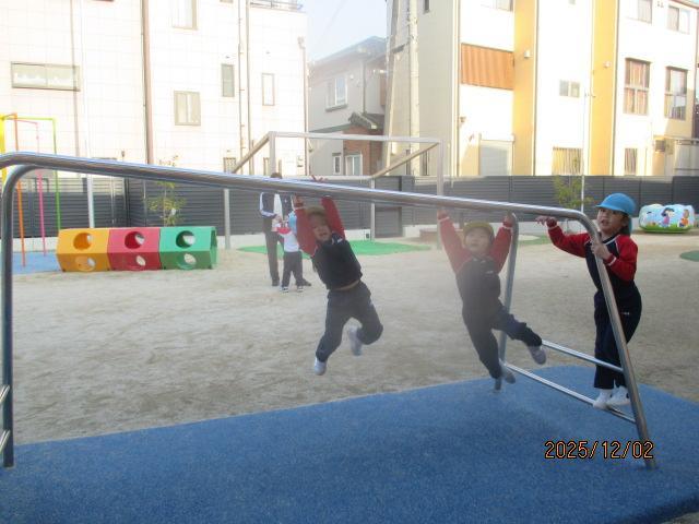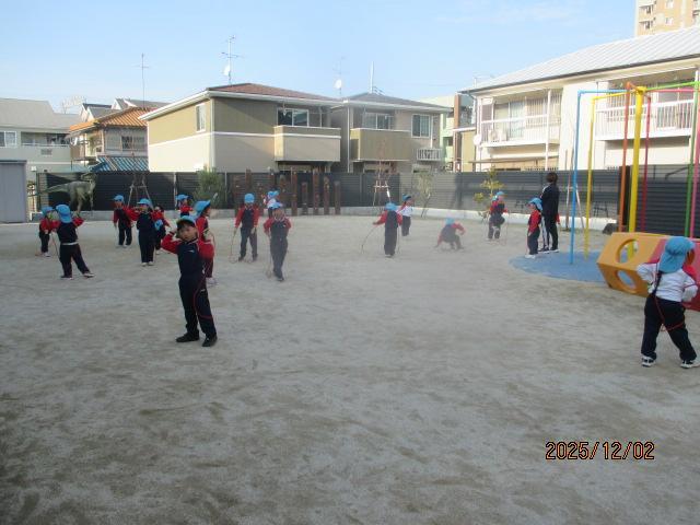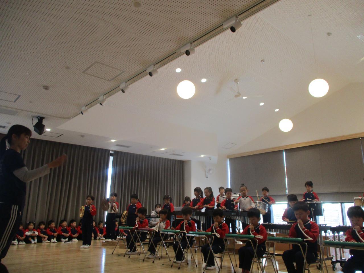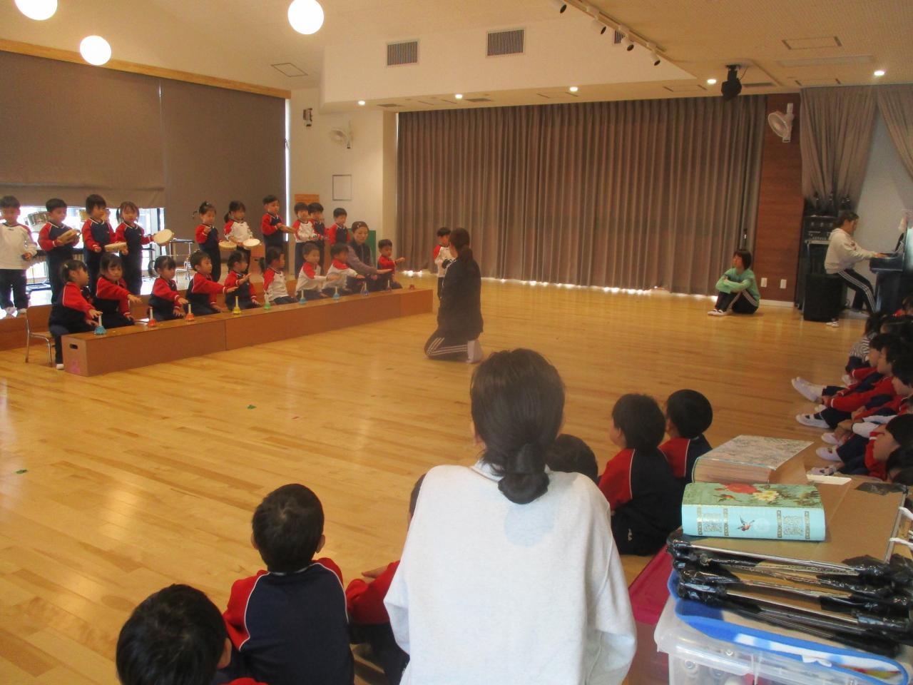 この後、幼児3クラスのお遊戯を見せ合いっこしました。歌はなかなか指揮者の先生をみていないので、腕を後ろに回すタイミングがずれたり・・・。うめ組のお遊戯もまだまだ練習不足でしっかりと覚えきれていませんが、少しずつ上手になってきました。ゆり組は細かいところまでしっかりとできていて、担任色がよく出ています笑