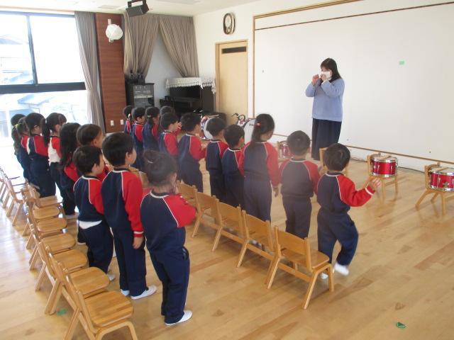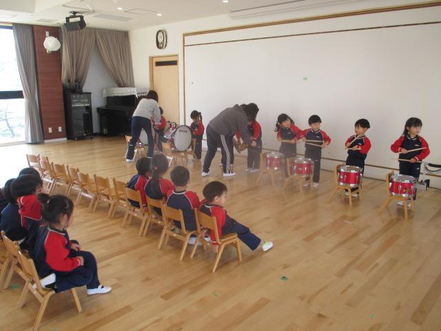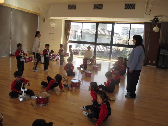 午後から音楽教室がありました。うめ組さんは成人式で披露するマーチングを見てもらいました。