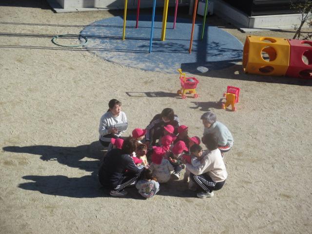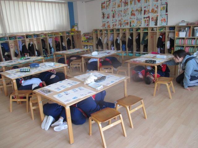 朝10時すぎに園のDPASSが「震度3の地震が来ます、10.9.8.....」となりだし、各部屋の子ども達は慌ててダンゴ虫のポーズをとってくれていました。もも組さんは園庭で遊んでいましたが、園庭のスピーカーから聞こえたDPASSに反応し、園庭の中央で小さくなってくれていました。きく組さんもさくら組さんも上手に出来ました。その後も大きな地震が来るかもしれないと注意をしながら保育にあたってくれていましたが何事もなくてホッとしました。