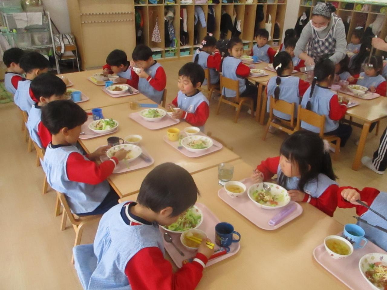 全クラス園庭にでて、ラジオ体操をしました。今日2月6日は「フロの日」なんだって。今日はしっかりとお風呂にぬくもって明日の保育参観は元気に来てね。とお話しました。その後担当の先生のお話。「今日はブロッコリーの日でもあるんだよ。ブロッコリーはビタミンやミネラルが豊富なお野菜だから、嫌いとか言わずにしっかり食べてね!」と食べることが大好きなS先生のお話でした。この間乳児さんもしっかりとお話を聞いてくれていました!