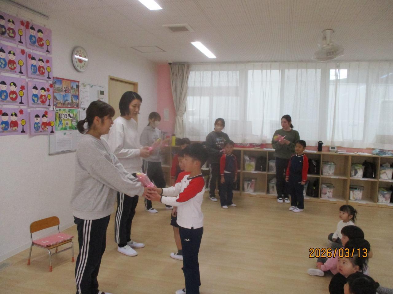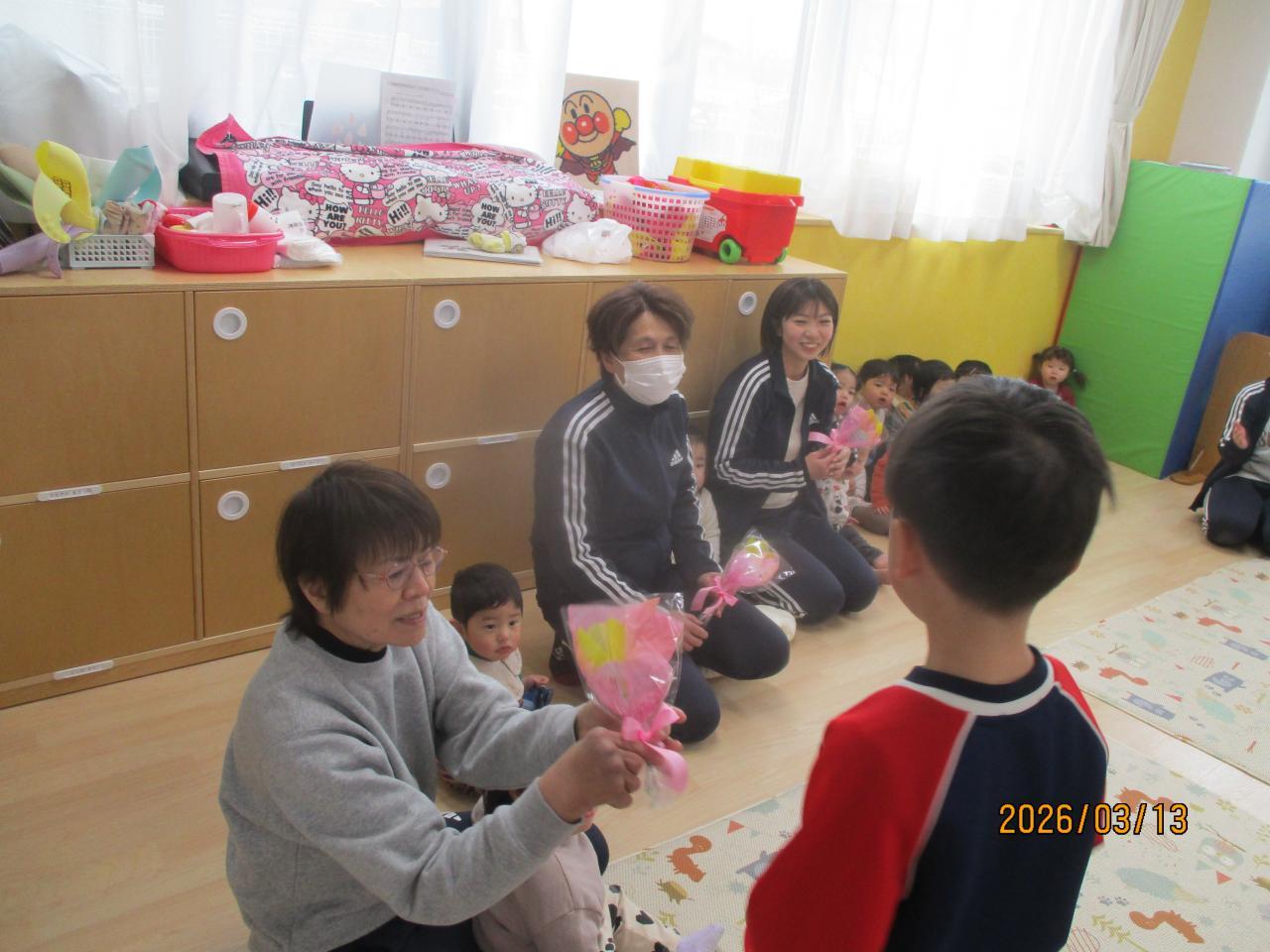 明日、卒園式を迎えるうめ組さん。お世話になった先生方にお礼のご挨拶に回ってくれました。