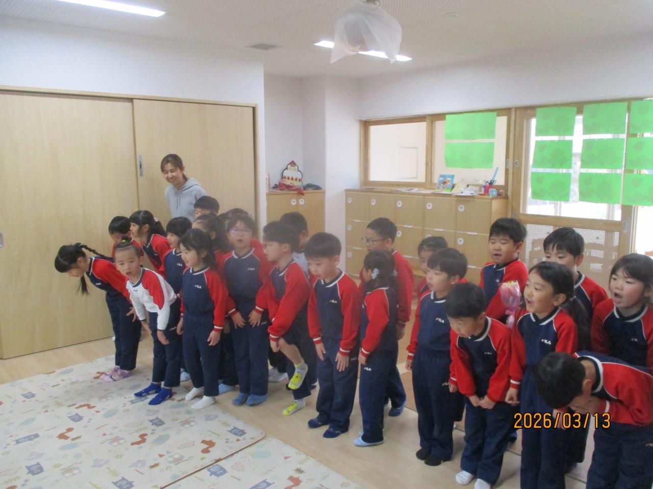 明日は第50回卒園式です。5歳児うめ組が立派な姿を見せてくれます😄登園時に普段は照れて大きな声でご挨拶できないうめ組さんが大きな声でかっこよくご挨拶してくれ、それだけでウルウル😭ラジオ体操の時に担任にその話をして、またウルウル😭毎年のことだけれど、立派になった5歳児を卒園させる喜びと、寂しい気持ちが入り混じった心境。担任の先生は今日寝れるかな~。