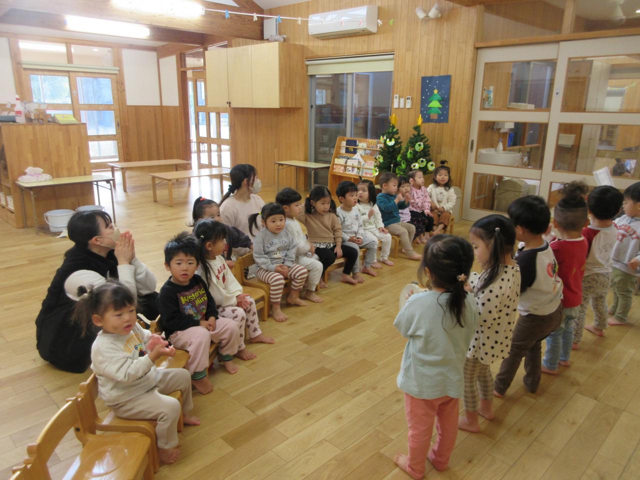 そんなツリーをバックに朝の会では、♪あわてんぼうのサンタクロース♪を楽しく歌っていましたよ