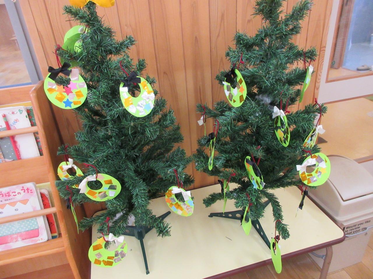 ぺんぎんぐみさんのお部屋には、クリスマスツリーにこどもたちが作ったリースが飾りになっています。