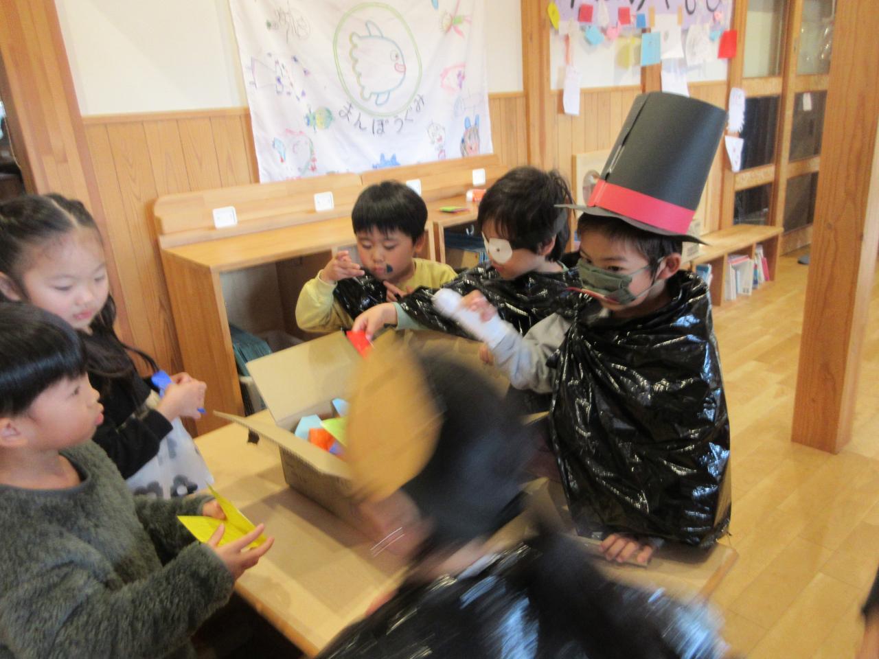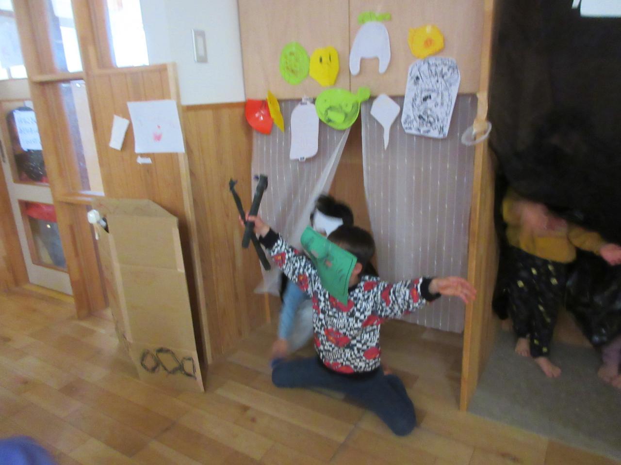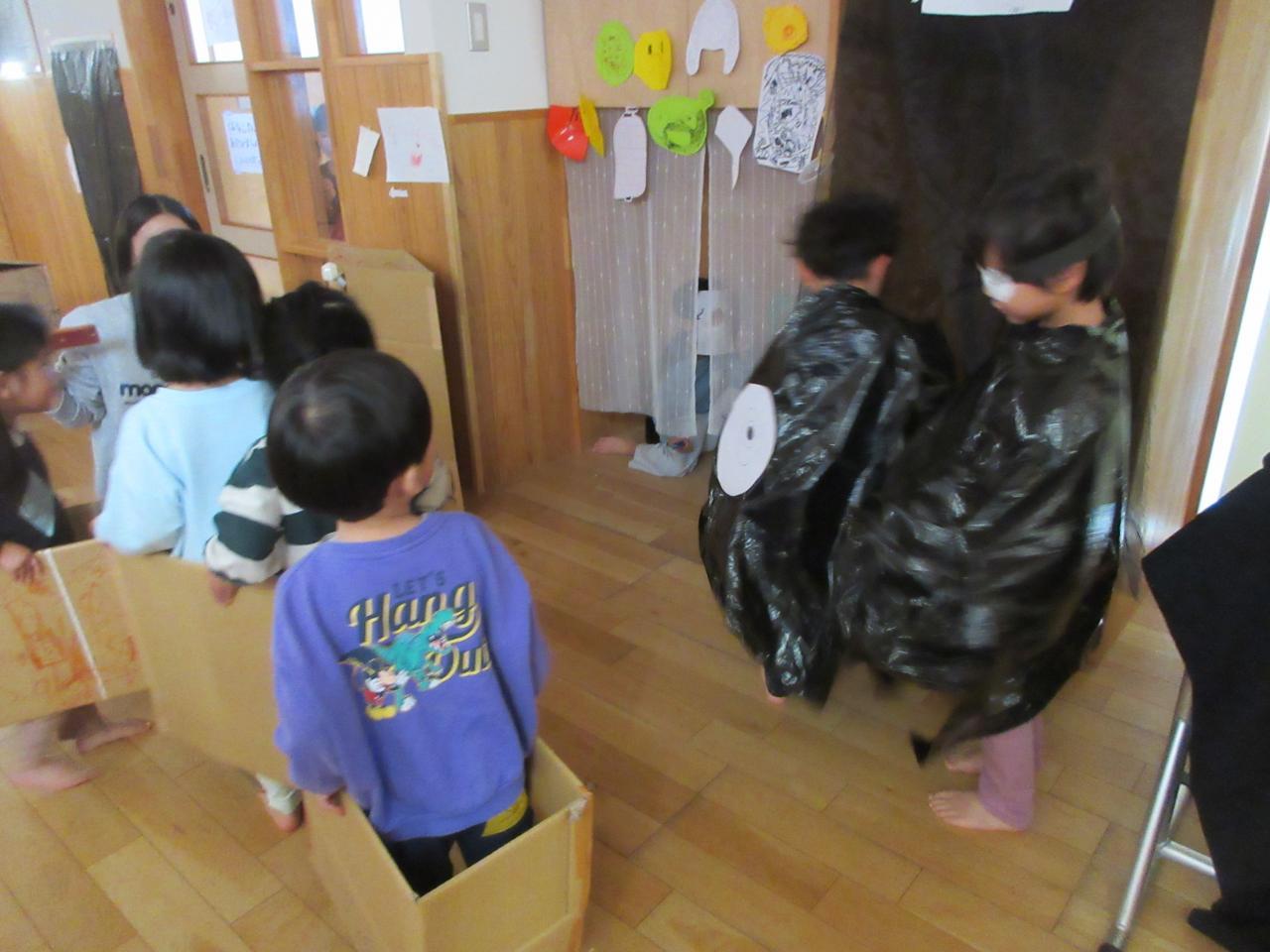 幼児クラスのお店屋さんごっこ、最終は5歳児まんぼうさんの【おばけやしき】です。