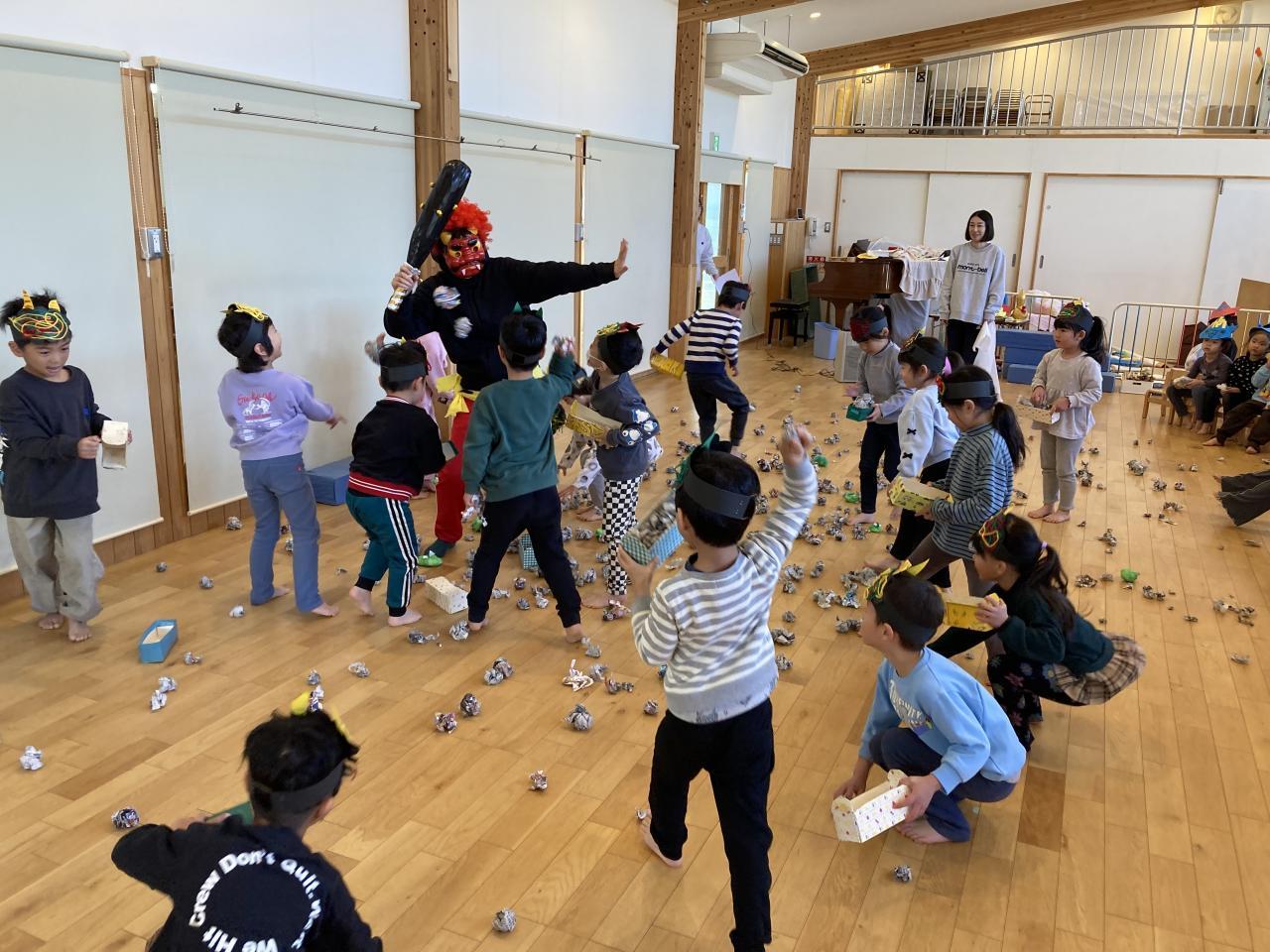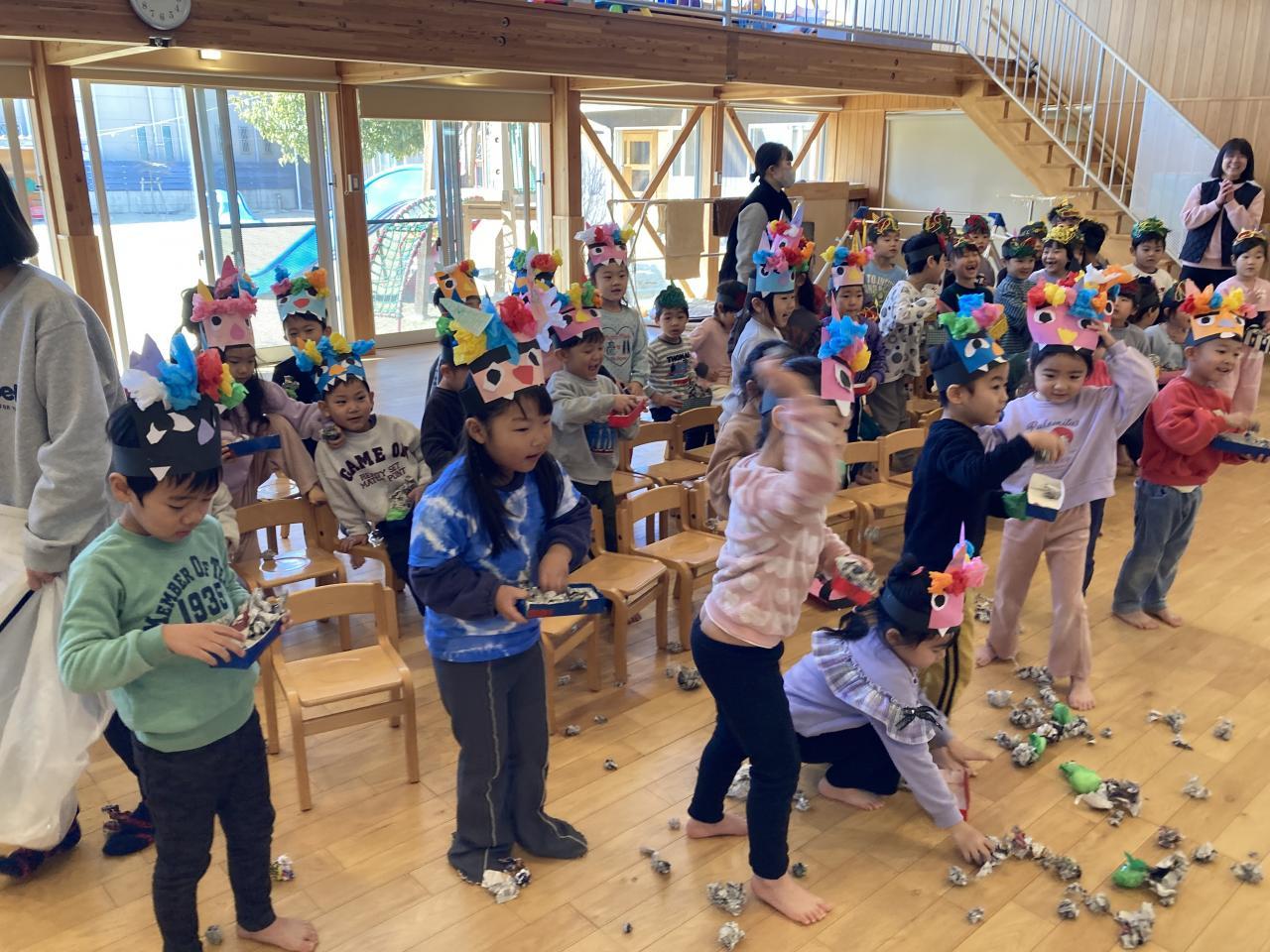 かもめ、くじら、まんぼうぐみは節分のつどいをしました
