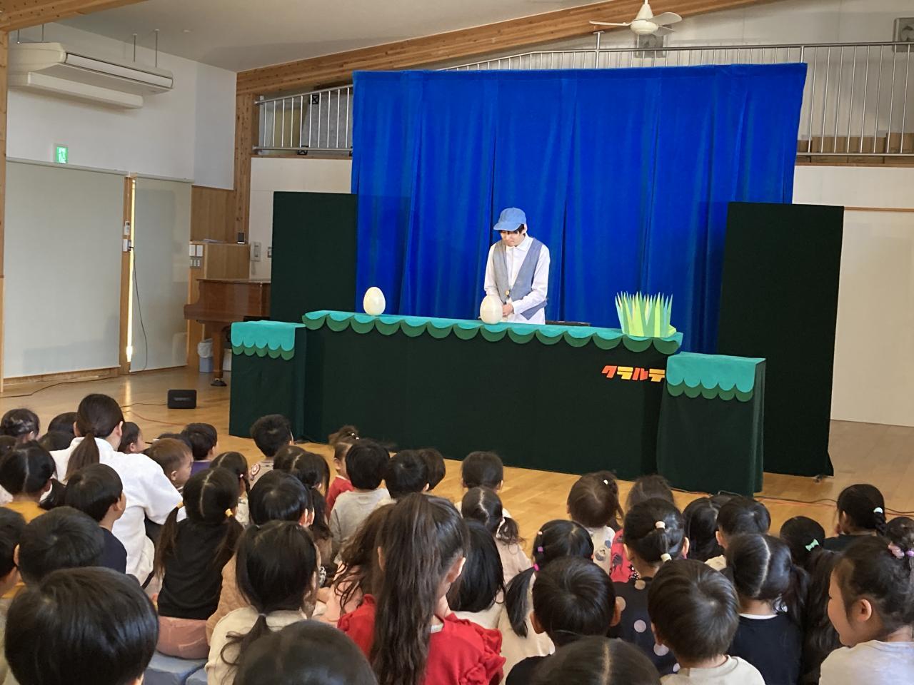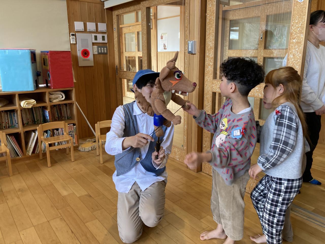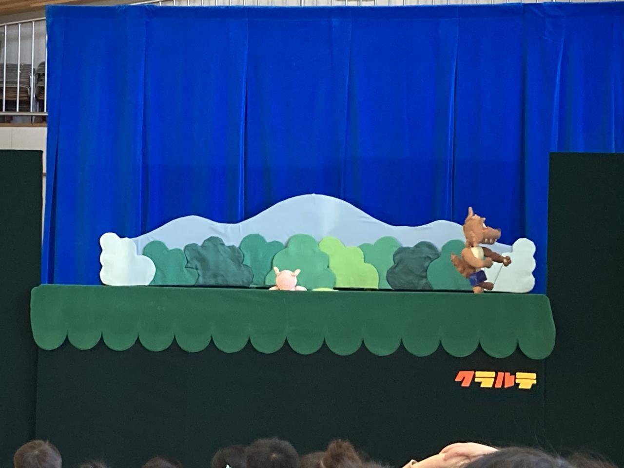 今日は、人形劇団「クラルテ」さんに来ていただき人形劇を見ました。