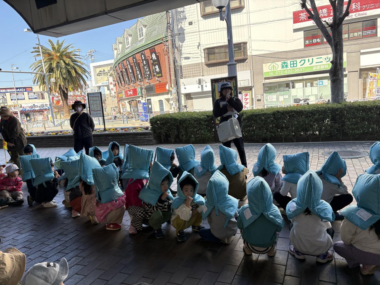 中央保育園の避難先は東光小学校ですが、今日は南海の岸和田駅までを目指して歩きましたよ。