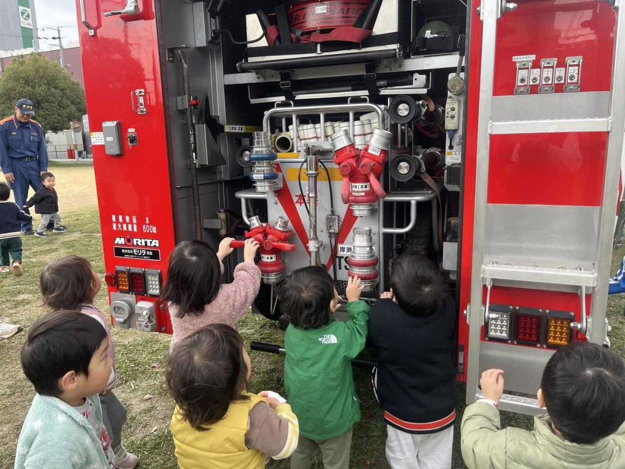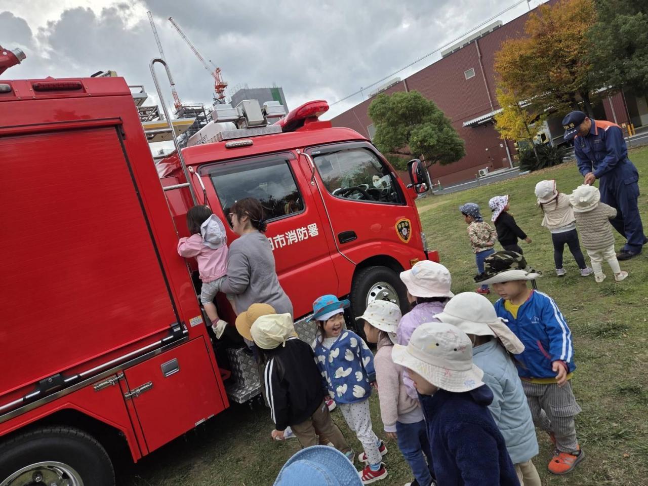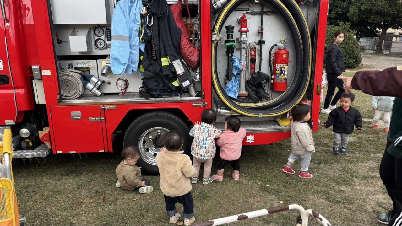 最後はお楽しみの、消防車の見学です。