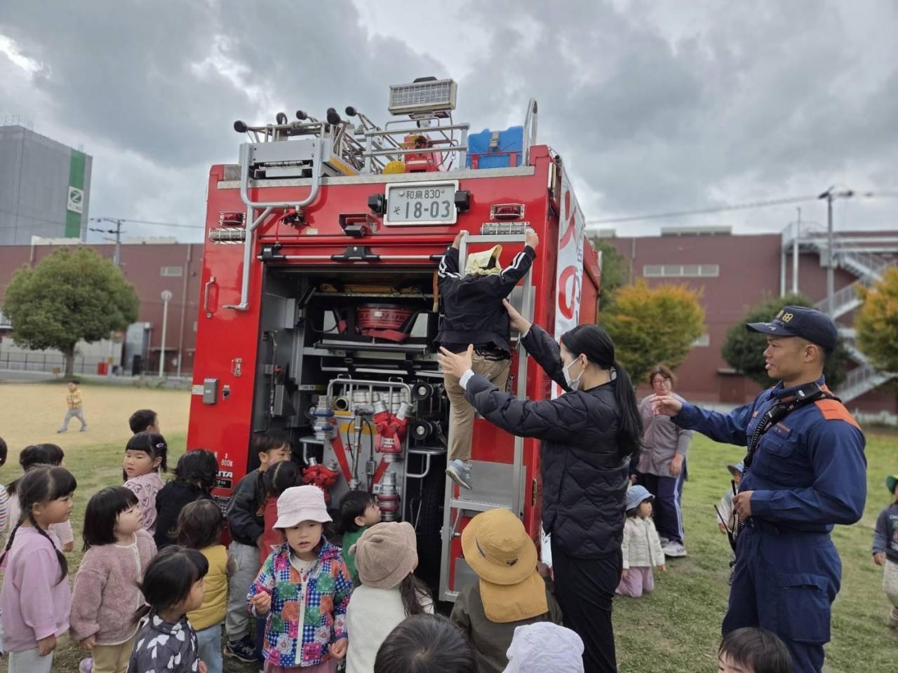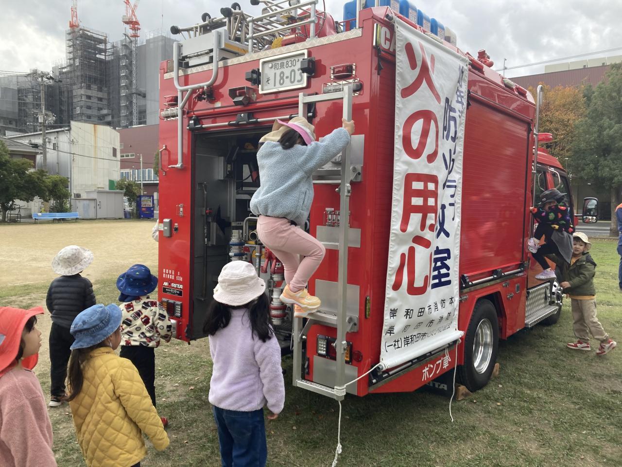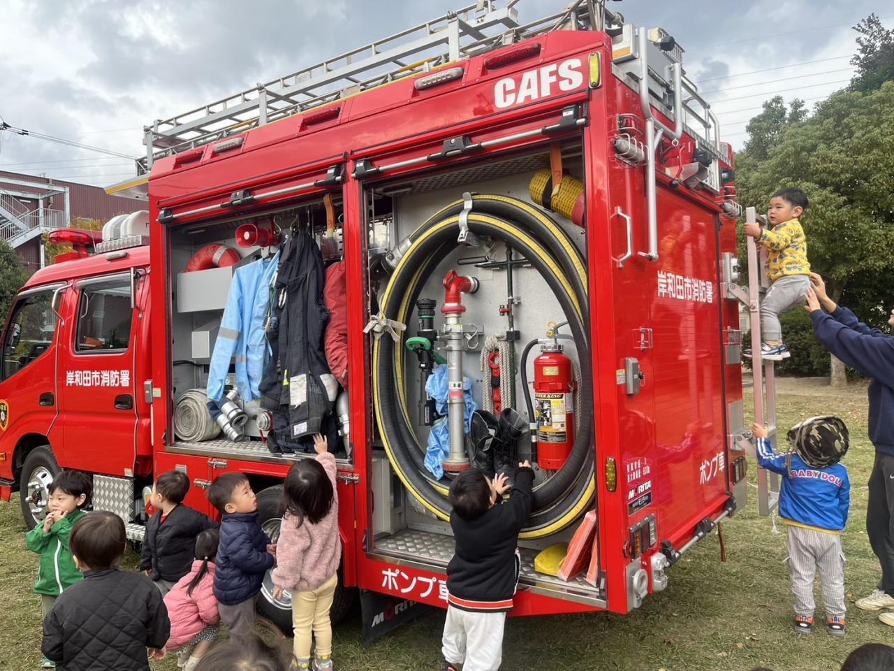 最後はお楽しみの、消防車の見学です。