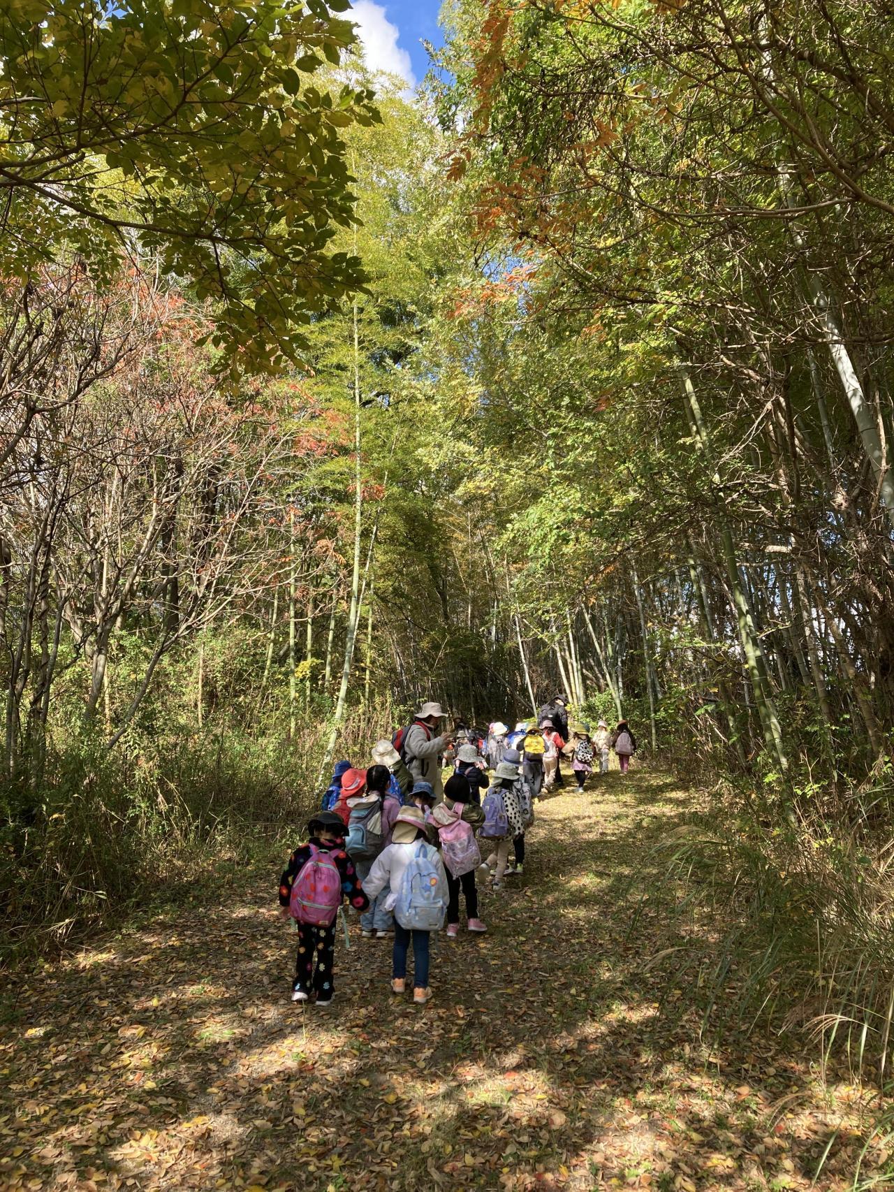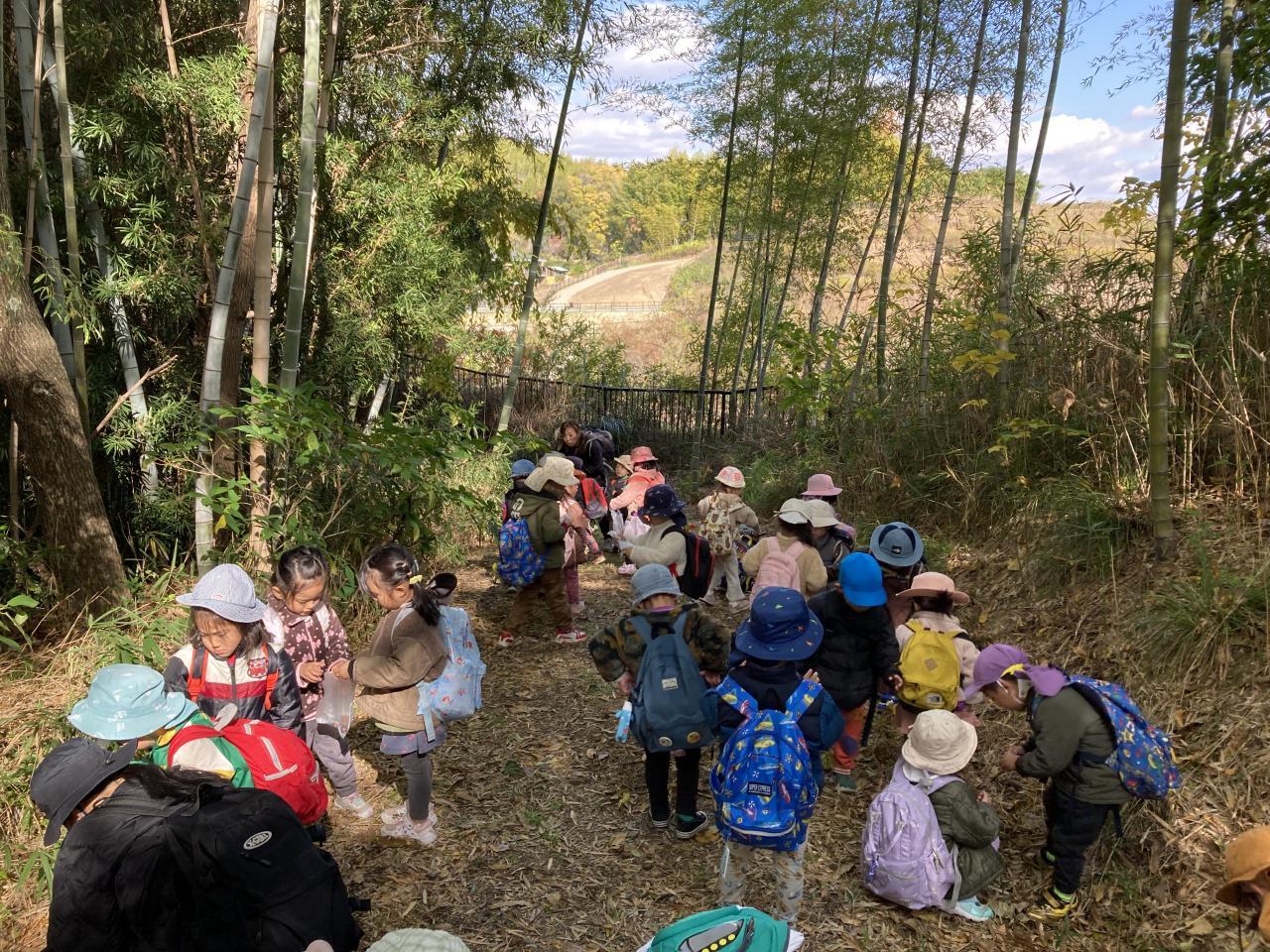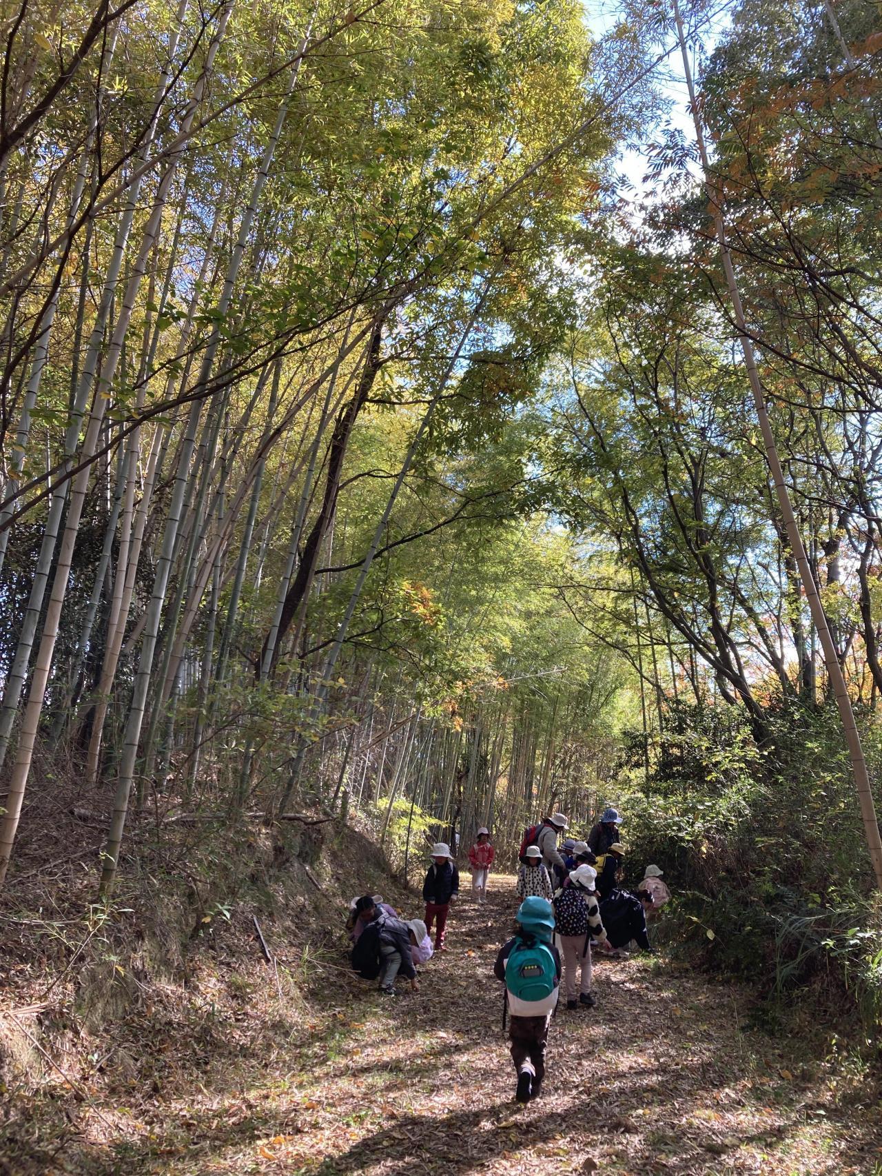 竹林の中に入って、どんぐり拾いへ。