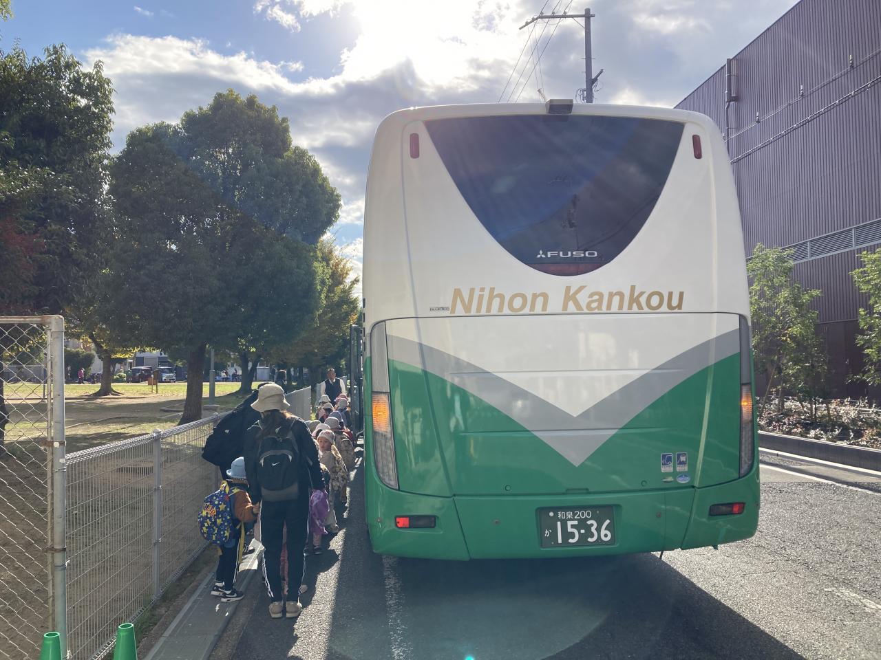 大型バスに乗って、出発です。