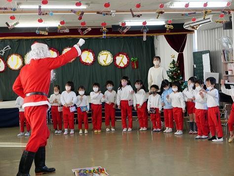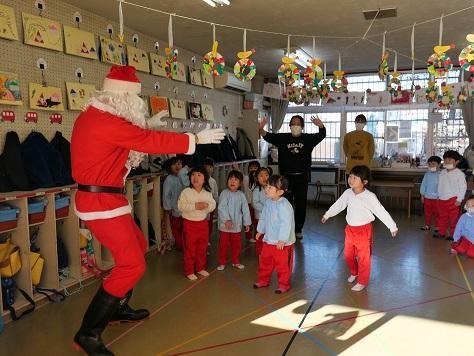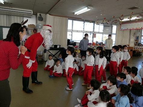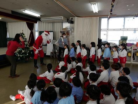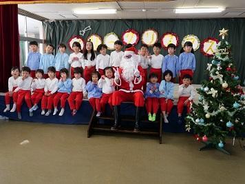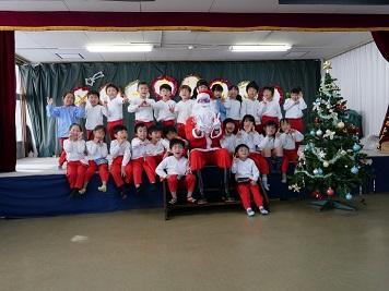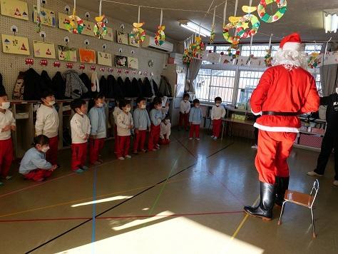 今日はクリスマス会で、サンタさんが各クラスにプレゼントを持ってきてくれました。サンタさん登場でびっくりした表情の子や嬉しそうにはしゃいでる子、ちょっと固まっている子などいました。一緒に写真を撮ってもらうとみんな嬉しそうでした。