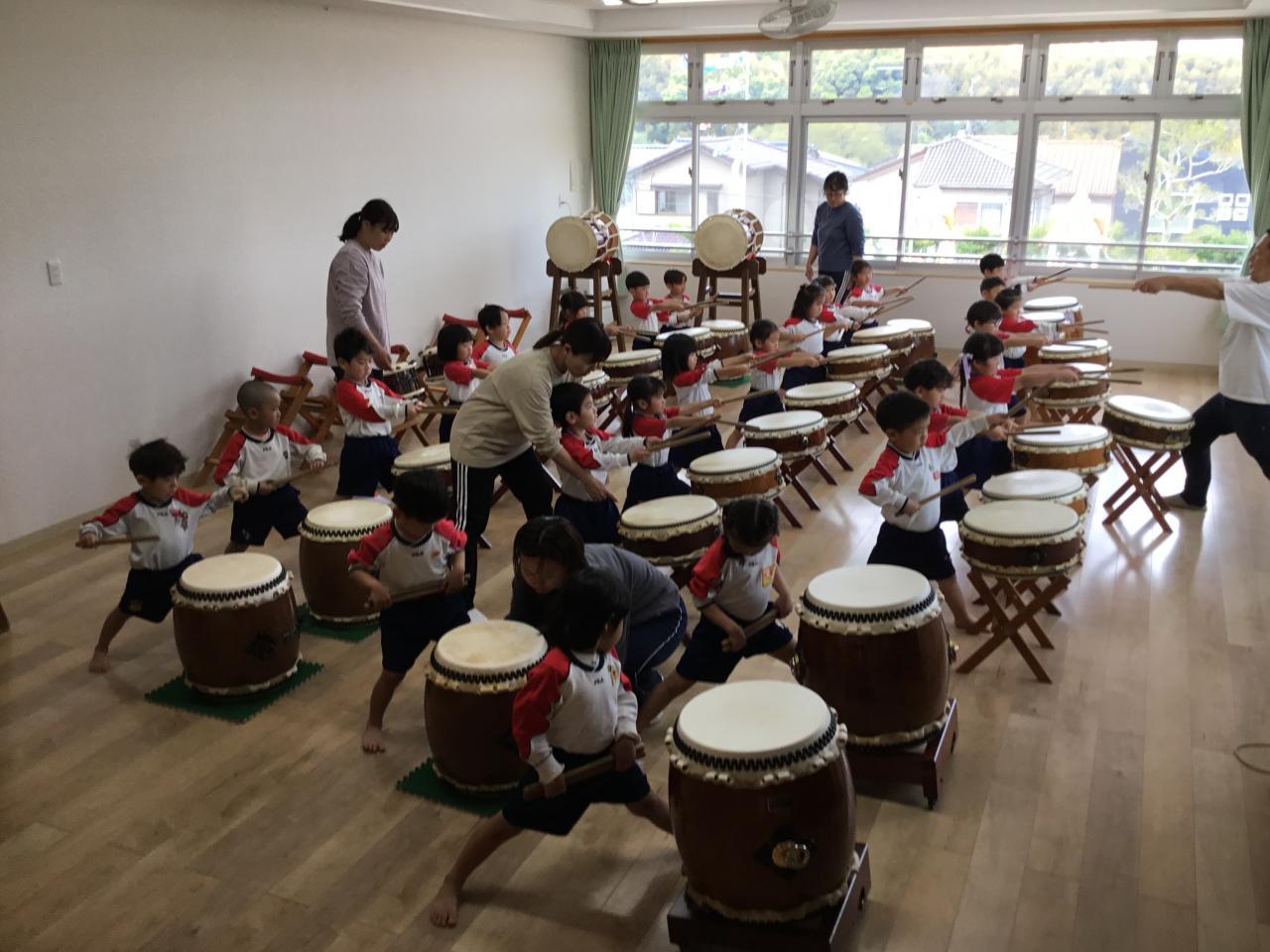 うめ・ゆりぐみは音楽教室がありました。うめぐみになって初めての和太鼓指導ですが、昨年度末に一度予習をしているのと、今年度になってからもクラスで練習をしていたので比較的スムーズに始まっています。