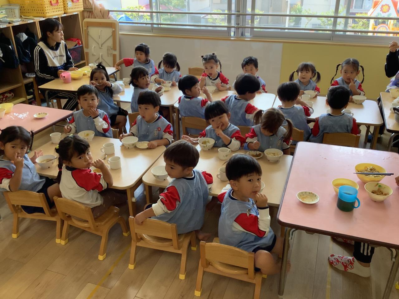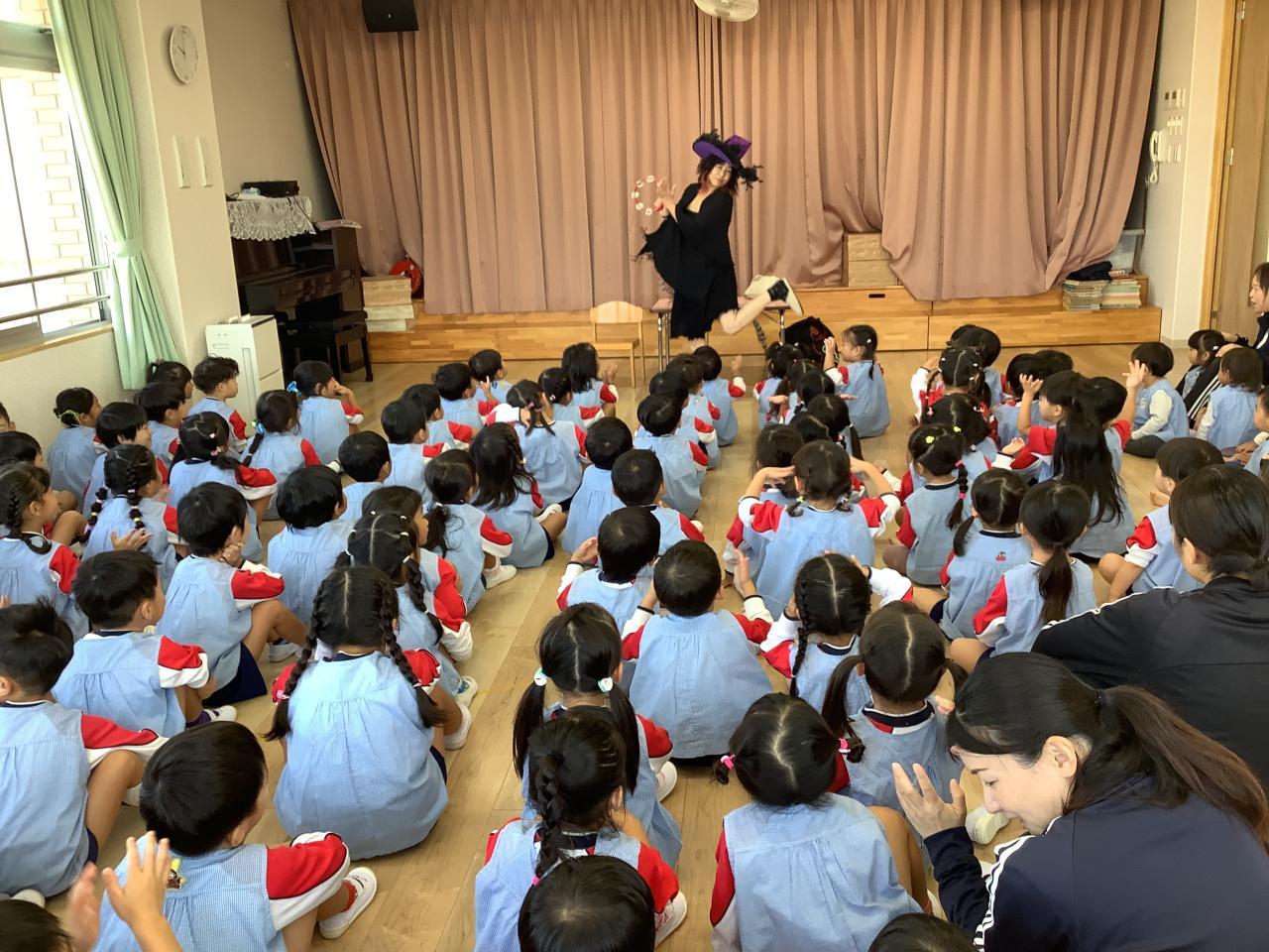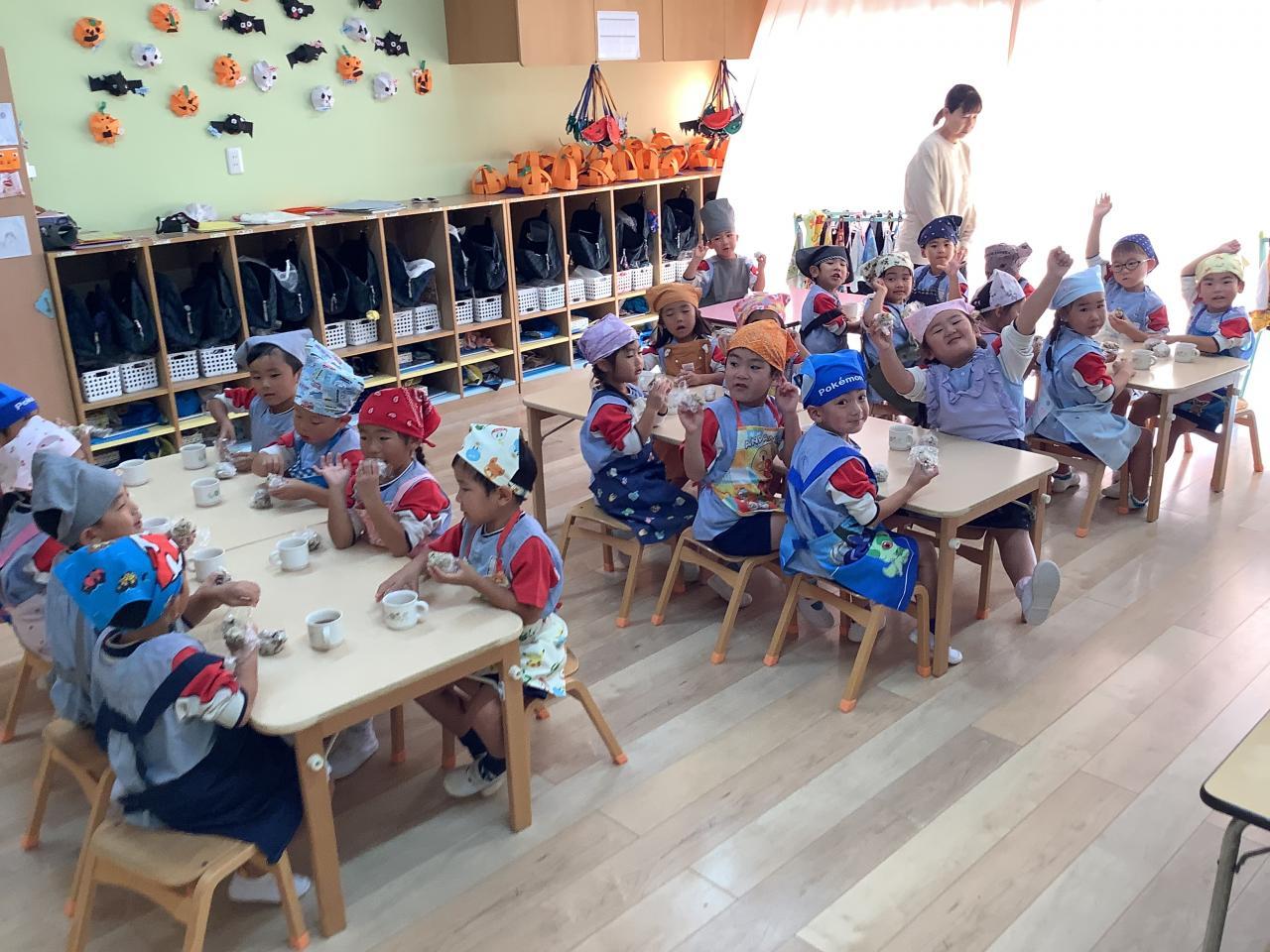 今日は朝から“さゆりん×→魔女りん〇のお話会”があり、午後からはうめ・ゆりぐみが食育会に参加しお米について学んだあと、各クラスでおにぎり&手巻き寿司作りに挑戦しました。