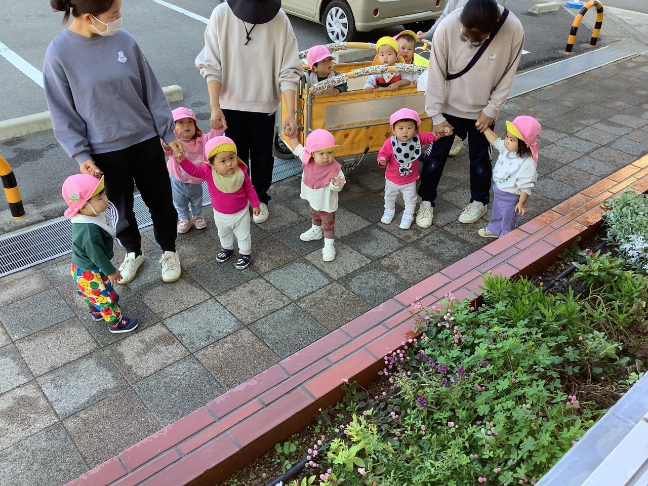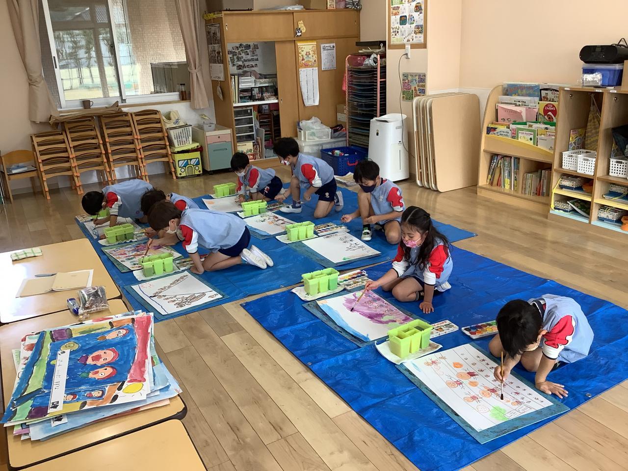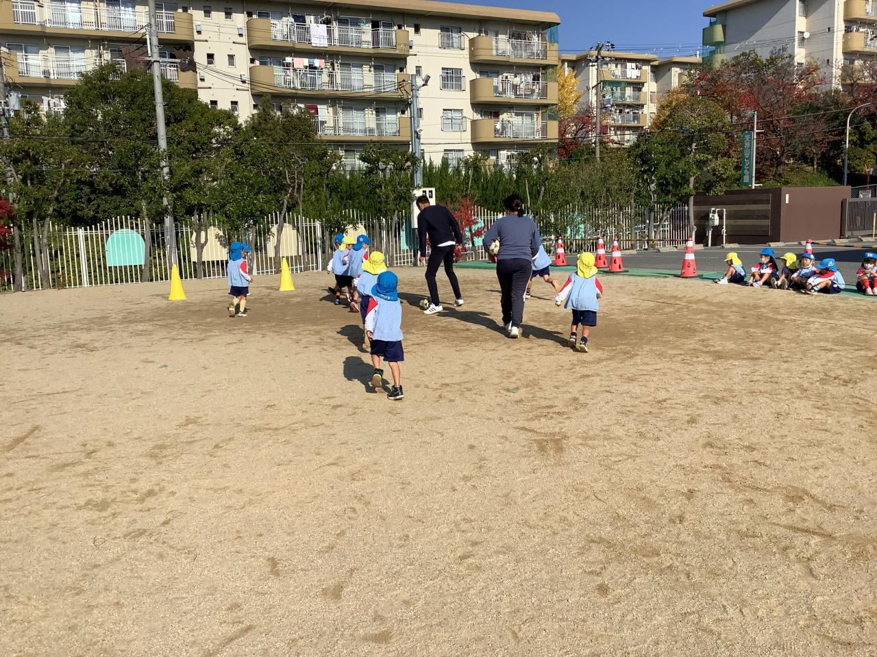 園庭のもみじが真っ赤に染まっています。団地や街路樹の紅葉もとても綺麗で、春の桜とともに天神山町自慢の風景です。当園は校区外から通う家庭が大多数ですが、この町で過ごす時間は子どもたちにとってとても良い環境構成となることでしょう。