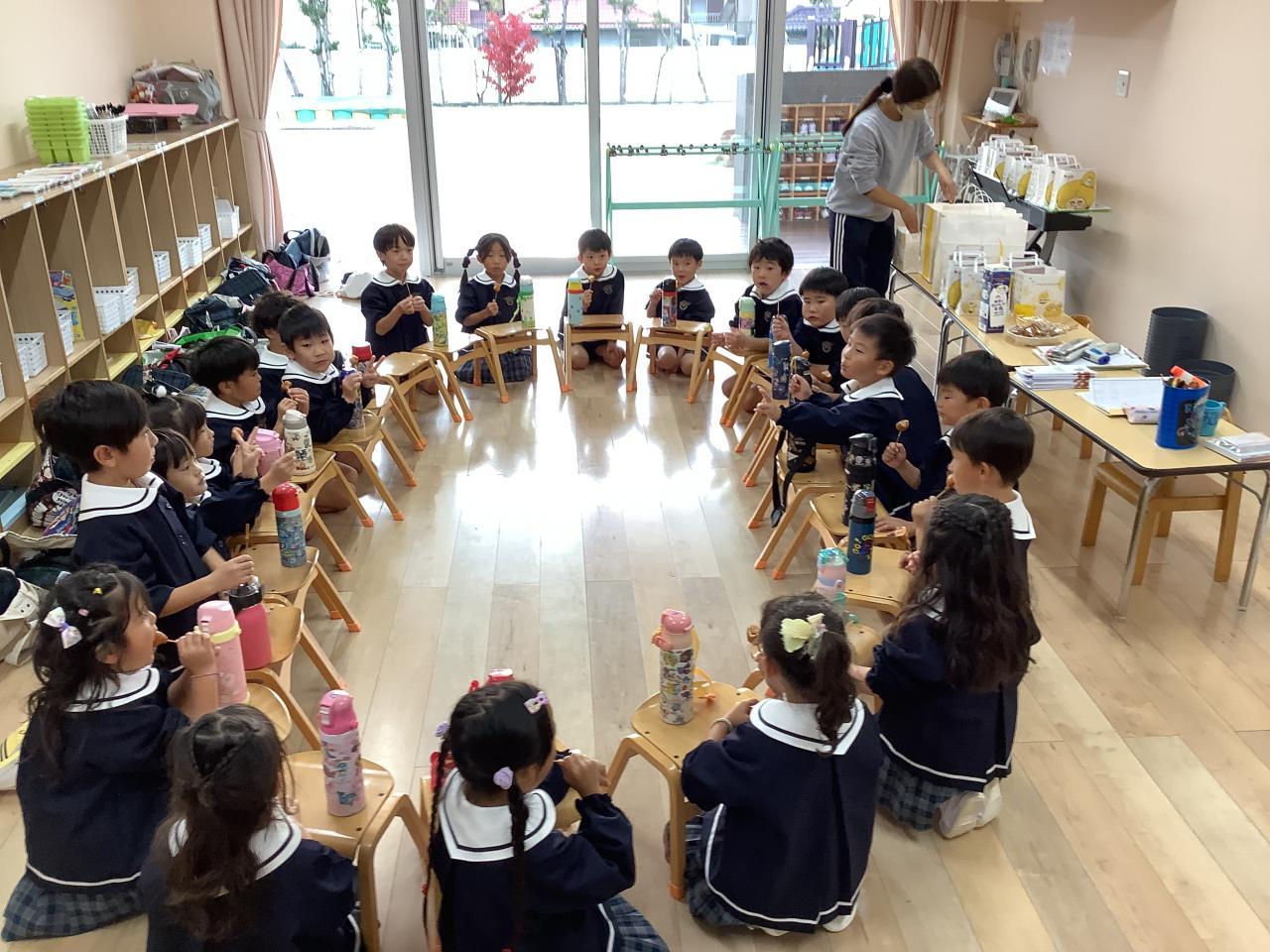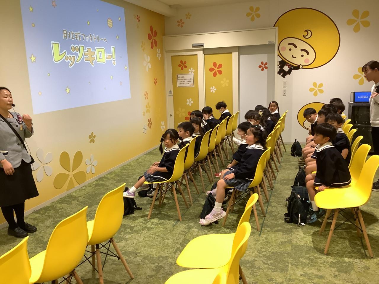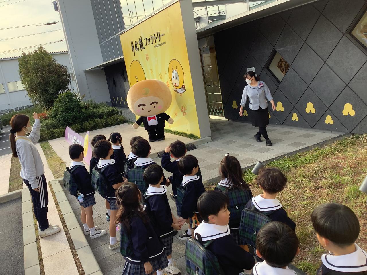 ゆりぐみは久々に全員が出席し、揃って楽しみにしていた工場見学に行く事が出来ました。何と言っても見学した人しか味わえない作りたての月化粧の試食、同じく見学した人しか買えない出来立てホカホカの月化粧販売コーナー、子どもたちが見て学べる映像&プレイコーナーという充実ぶり。