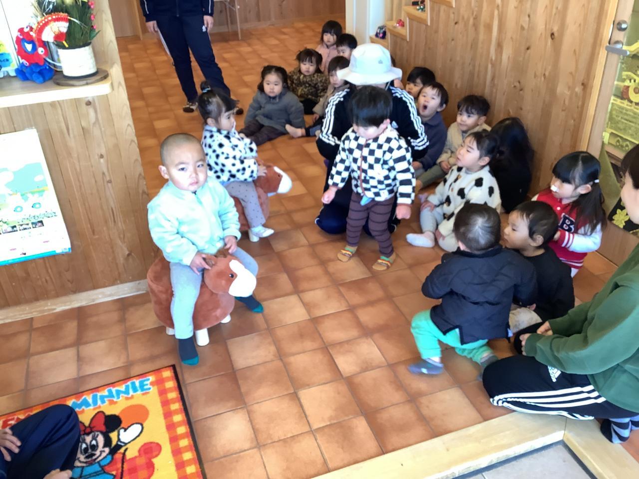 園庭の時計の電池を買いに走り、レジを待つ横でふと目についたお馬の椅子。店員さんに尋ねると現品限りとのこと。すぐさま子どもたちが喜ぶ姿が脳裏をかすめ、追加の会計を済ませ、いざ持ち帰ると…
