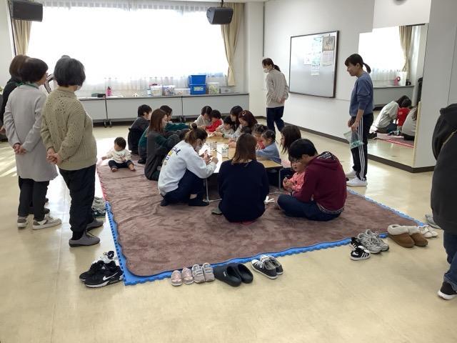 お隣の公民館では今年最初の子育てあいあいを実施。年始早々にもかかわらず11名の子どもたちが元気に参加しました。来月は節分にちなんだ内容ですよ。