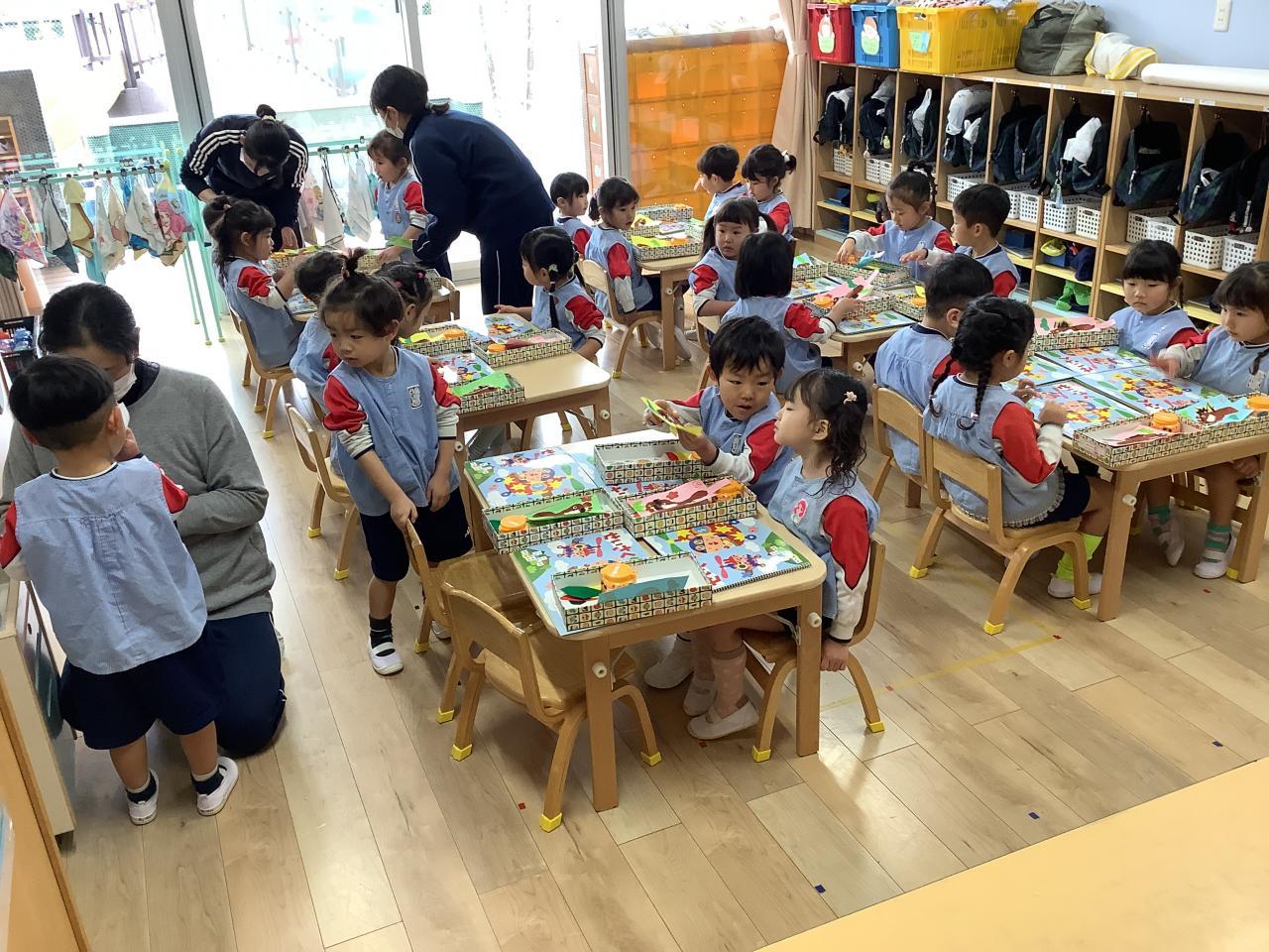 続いては子どもたちがサッと写真を見て、その絵を画きお友達が当てるクイズへ。これは画力というより着眼点や記憶力?などを活かし個性を感じる絵もあれば、隣の児のコピーがあったりと様々。