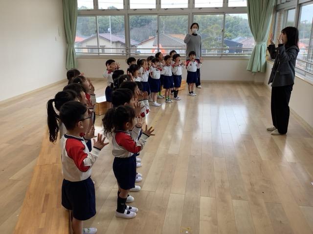 ばら・うめ・ゆりぐみは各々遊戯室で声楽教室のレッスンを受けています。その声楽教室で2019年からご指導いただいたS先生が、今年度をもって勇退されることになりました。今年度は発表会が2月につき、以降のレッスン日が取れないため今日が最後の声楽教室となりました。