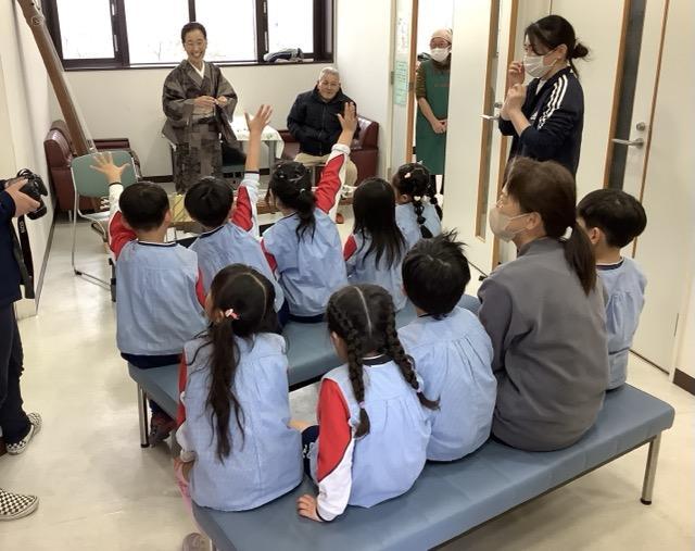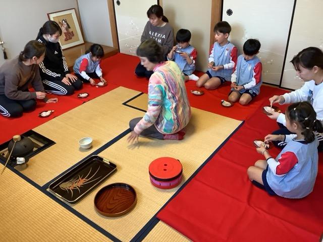 午後から天神山地区市民協 福祉部会 有志の皆さんのご厚意により、今年もお茶会にお招きいただきました。例年通り、ゆりぐみ諸君と先生たちはお作法とお茶の心得に触れ、ピリッと背筋を伸ばす時間でもあります。