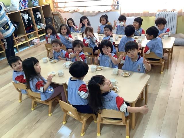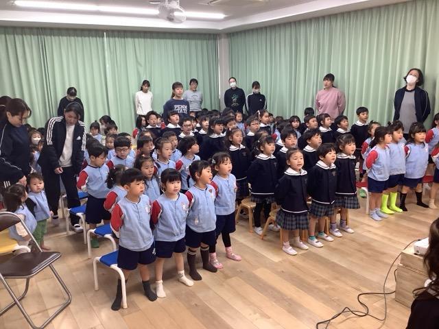 今日は最後の卒園式練習につき、例年通り全クラスと先生(調理は手が離せません、、)たちがオーディエンスとして参加しました。