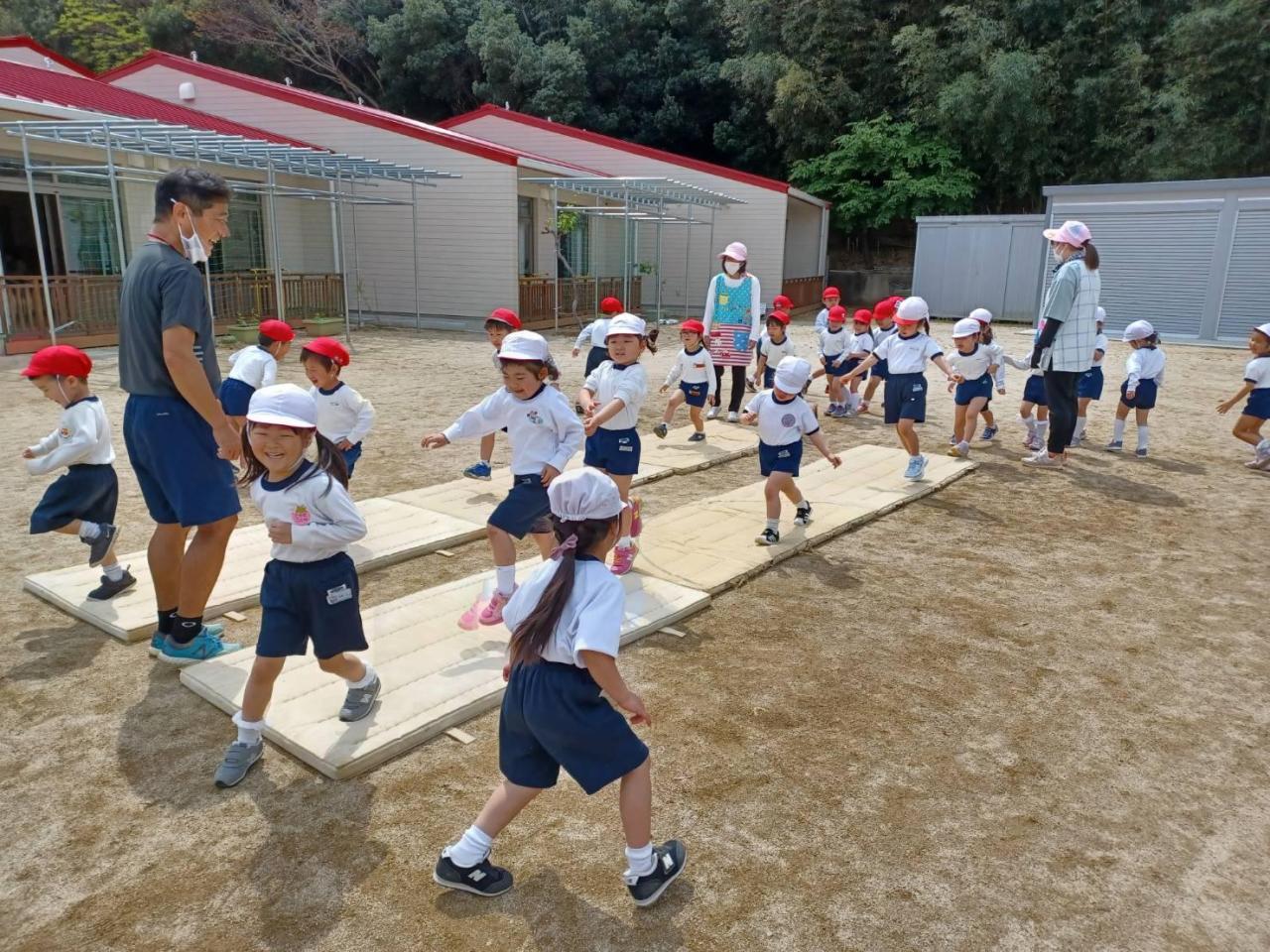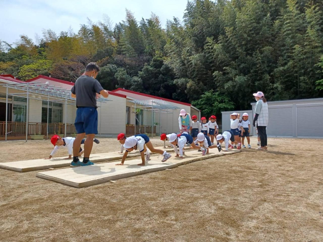 たんぽぽ組さんの体育指導を見た後で、すみれ組さんの体育指導を見ると