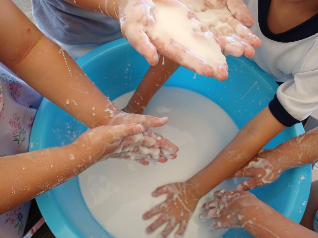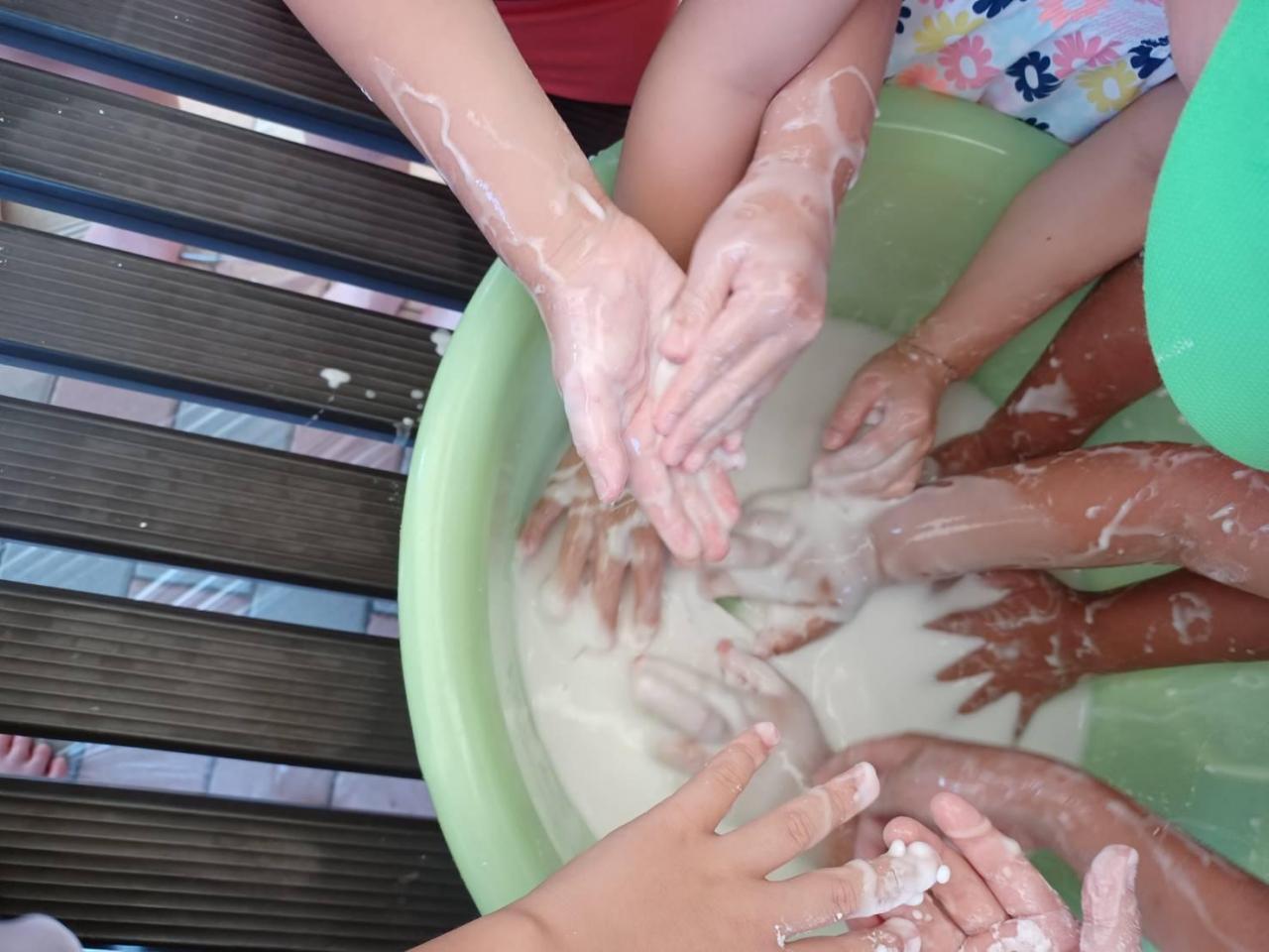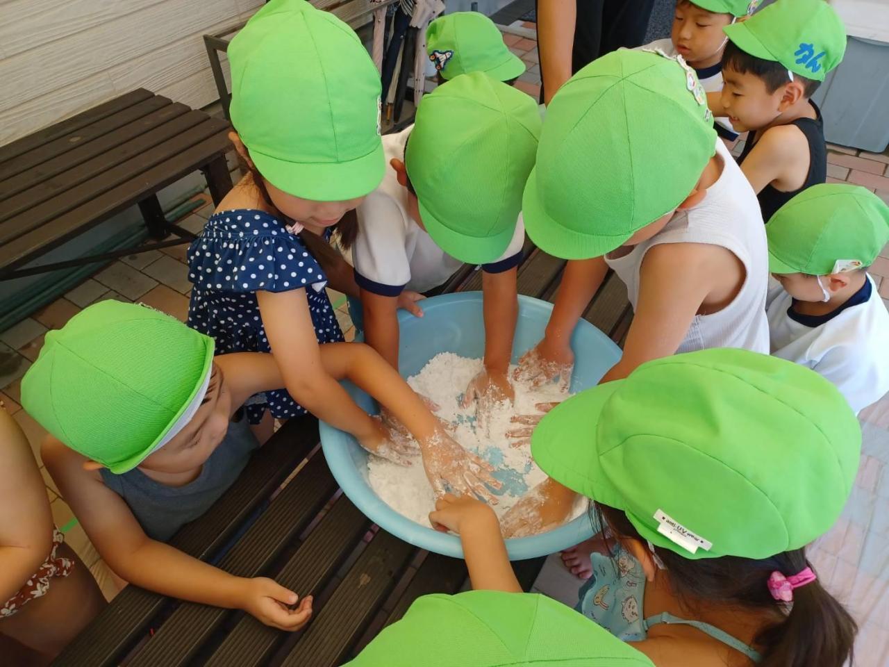 昨日片栗粉について話をしていたので「家にあった」と教えてくれる子どもたちがいました。