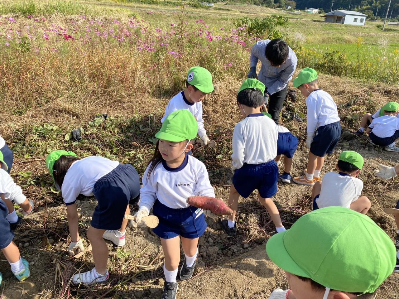 子どもたちはお芋が見えると「おいも!先生見て!!」と大興奮!