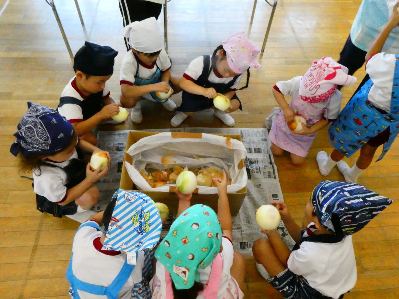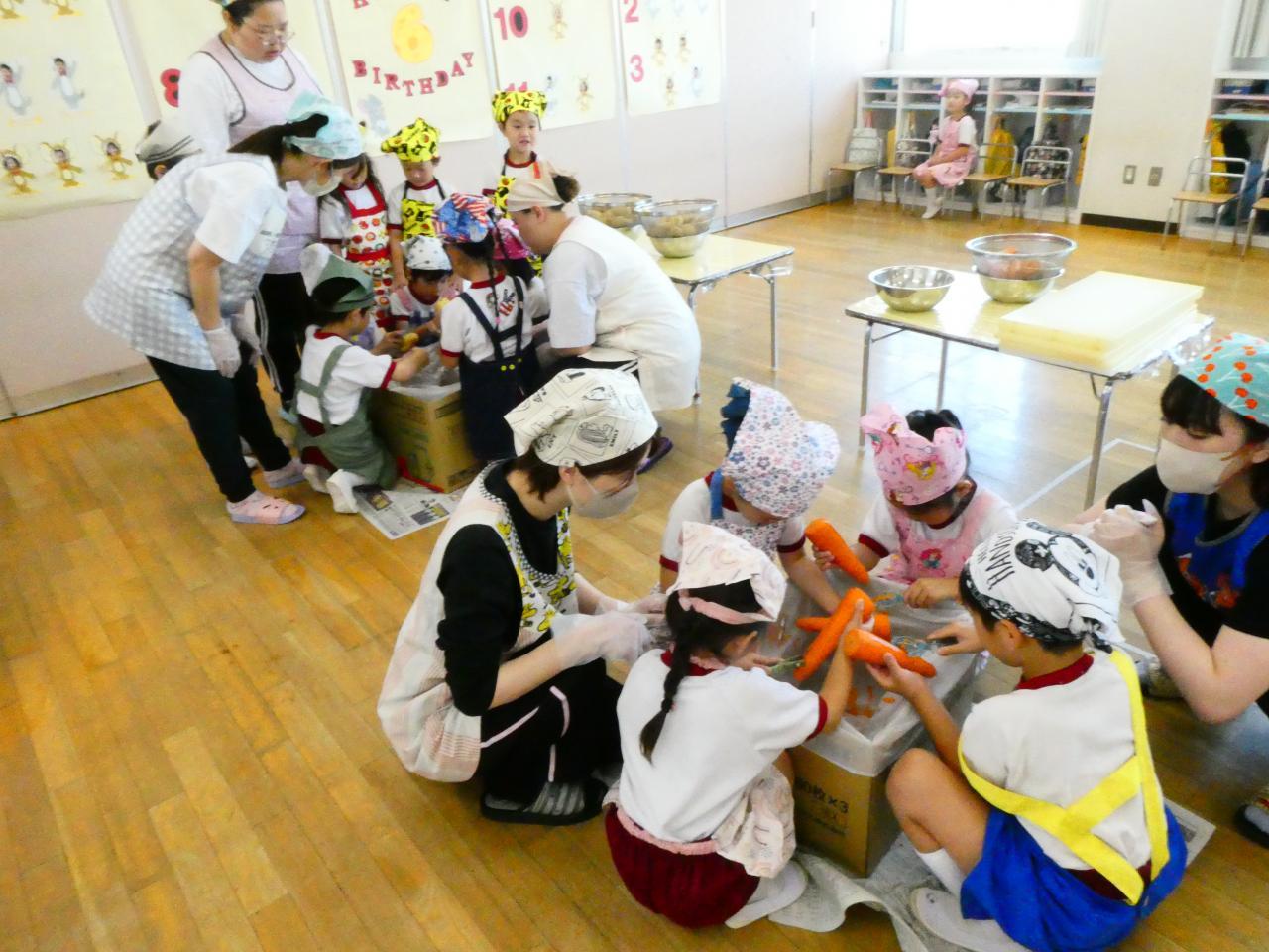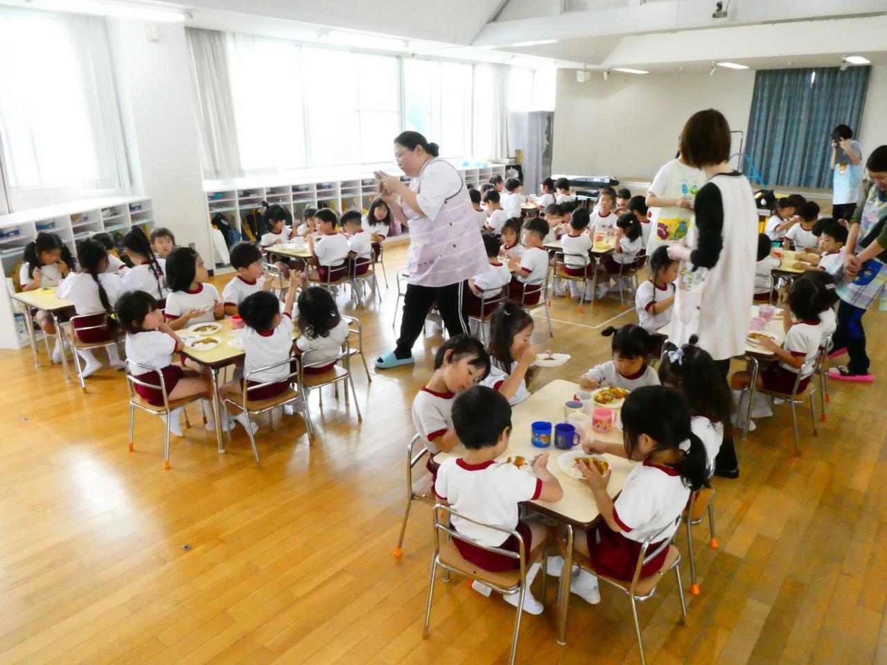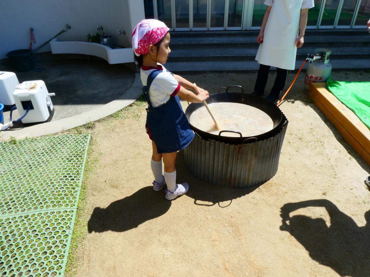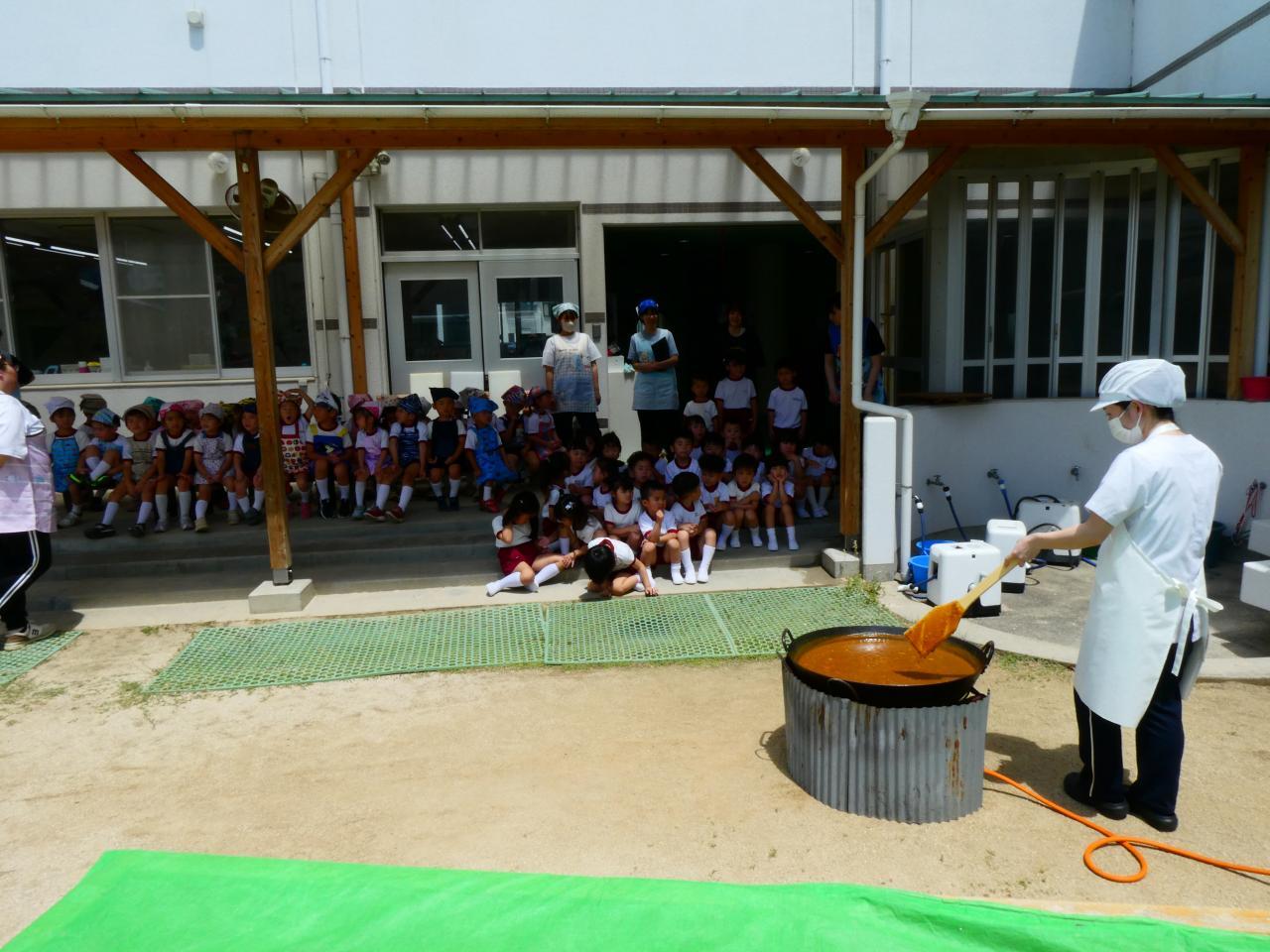 園庭にはカレーのいいにおいが漂い、みんな「あー!お腹すてきた!!早く食べたい!!」