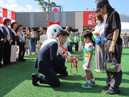 今日10月1日より全国一斉に赤い羽根共同募金運動が始まりました。昨年度と同じく「つながりをたやさない社会づくり~あなたは一人じゃない~」をテーマに、来年3月末まで行われます。各ご家庭に募金袋を配布させて頂きますので、ご賛同頂けるご家庭は募金へのご協力どうぞよろしくお願いいたします。その初日となる今日は全国各地でイベントが開催され、岸和田市ではそよら東岸和田店芝生広場にてオープニングセレモにーが行われ、社会活動の一環としてもも組さんが募金の啓発と募金活動に参加しました。