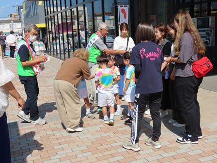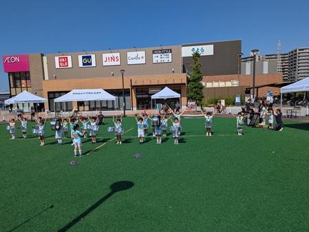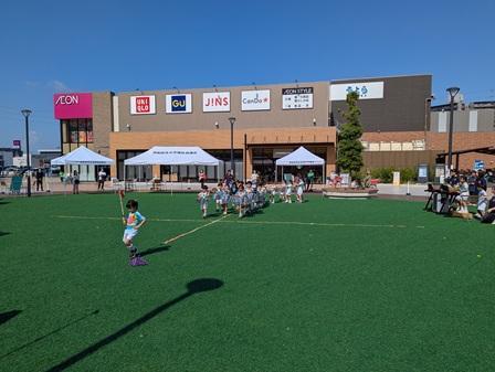 今日は10時からセレモニーが開始され、主催者・市長挨拶・来賓紹介の後、募金活動への啓発としてもも組さんが力強く2曲を演奏し、保護者の皆様をはじめそよらを利用する方々から大きな拍手を頂きました。そよらでの開催は初めてということで、主催者である共同募金会の方々が念入りにセッティングして下さったおかげで、準備万端(?)で臨んだもも組さんは初のフォーメーションも難なく決め、次の舞台である運動会へ向けさらに自信がついた様子でした。演奏による募金啓発の後、グループに分かれイオンの入口で「ぼきんおねがいします!」と大きな声で募金活動にも参加。そよらをご利用の方より温かい募金のご協力を頂き、「ぼきんてなに?」と言っていたもも組さんも、社会の一員として立派に活動することが出来ました。