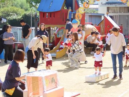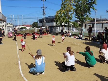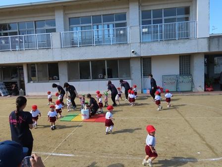 今日はつくし組・たんぽぽ組さんのミニ運動会を開催いたしました。昨日とは打って変わり今日は朝から良いお天気に恵まれ、つくし組さんたんぽぽ組さんがとってもかわいい姿を披露してくれました!中には保護者の皆様を見つけて泣いてしまう子もいましたが、親子ゲームではお父さんお母さんを頼りながらも良いお顔を見せ、一人ひとりが持っている力を存分に発揮してくれました。保育室では日々音楽を慣らしながら、少しずつ身体で覚え頭で理解していき今日の日を迎えましたが、お子様達の成長ぶりはいかがだったでしょうか?今日のミニ運動会を通して保護者の皆様の表情を見ていると、大変喜んでいただけたかなと思っています。今日はお子様達をたくさん褒めてあげて下さいね。今後も保護者の皆様とともに健やかな成長を促していきますので、引き続きご理解とご協力の程よろしくお願いいたします。本日は平日にも関わらず多くの皆様にご参加いただきありがとうございました。