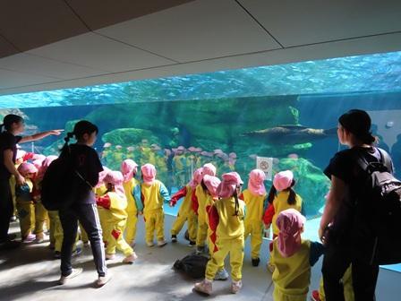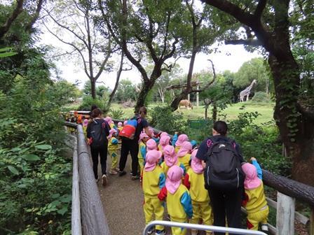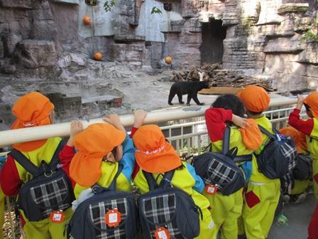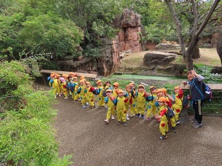 今日はゆり組・すみれ組さんが秋の遠足として天王寺動物園へ出掛けました。今年も園内大規模リニューアル工事中ということで、動物の観察はあまり出来ませんでした(もともと個体数も少ない・・・)。新世界ゲートから入ると右側(南側)のゾーンはほとんど工事中で、ホッキョクグマの新獣舎、ゾウが住むアジアの森の拡張、チンパンジーの新獣舎など、完成を想像するとわくわくしますが、来年度の園足ではその一部が見られるかもしれません。今日はカバ、キリン、ライオン、トラなどの大型動物たちも元気いっぱいにこども達を出迎え、みんな食い入るように観察していました。特にカバは少し興奮していたのか、水面に上半身を激しく打ち付け私も初めて見るような光景でした。帰りのバスではほとんどの子が一瞬でzzzと眠りに入っていましたので。今日は温かくしてゆっくりと休んで下さいね。