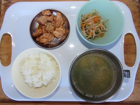 【今日の献立】 ☆ ヤンニョムチキン ☆ ナムル ☆ 若玉スープ ☆ ごはん