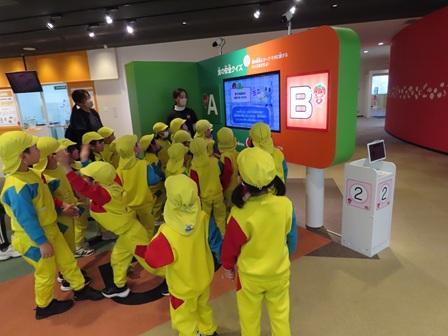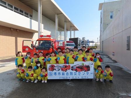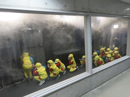 もも組さんの保育風景です。今日は堺市総合防災センターと和泉市にあるコープ・ラボたべるたいせつミュージアムへ社会見学に出掛けました。堺市美原区にある防災センターへはここ数年お邪魔しており、ここでは人材の育成・防災力の強化など堺市の防災拠点として整備され、大規模災害時は全国からの応援部隊の集結場所にもなるそうです。到着後まずは防災アニメももたろうで防災意識を高めた後、模擬消火(先生たちが行いました)、火災時の煙・暗闇避難体験、そして地震体験(こども達は震度5弱まで)など、災害時に生かせる様々な体験を経験し、こども達も楽しみながら訓練を受けていました。帰りにはコープ・ラボたべるたいせつミュージアムにも立ち寄り、普段の食育指導での知識を生かしながらここでも様々なことを学ぶことが出来ました。災害はいつ起こるかわかりませんが、発生時には今日の貴重な体験を生かてほしいものです。