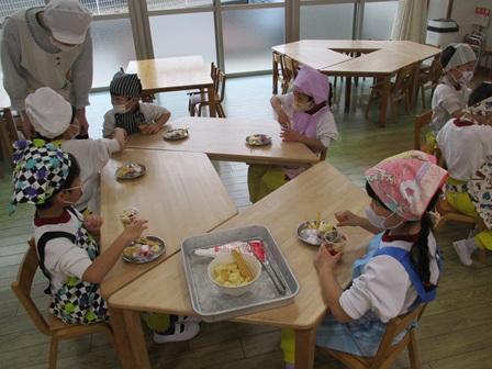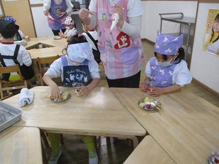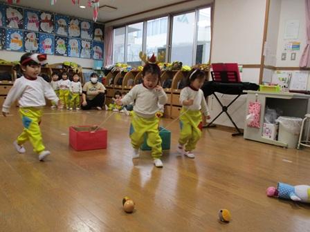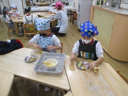 今日の様子です。今年のクリスマスはイブから生憎のお天気となりましたが、今朝は枕元にサンタさんからのプレゼントが置かれていた子が多く、プレゼントのお話しで盛り上がっていました。そんな今日は一日雨の降るお天気となり、各クラスではお部屋での活動をメインに過ごし、さくら組さんではクリスマスパーティーと称して、クリスマス楓借り物競争のようなゲームや楽器を使った遊びを楽しんでいました。もも組さんでは午後からちぼっこコックさんを行い、クリスマスケーキの盛り付け体験を行いました。いつもそうですが自分たちが手をかけたものの味は特別なようで、今日も満面の笑みで美味しそうにケーキを頂いていました。