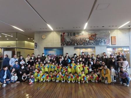 昨日1月12日(月)成人の日、南海浪切ホールで行われた「岸和田市成人式~はたちのつどい」で、もも組さんが式典に参加したお兄ちゃんお姉ちゃんたちへお祝いとしてマ-チング演奏を行いました。