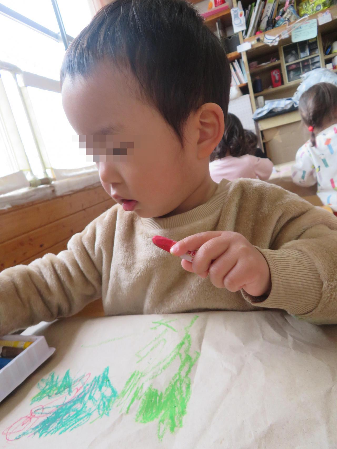 大きい紙にみんなでお絵描きしました。
