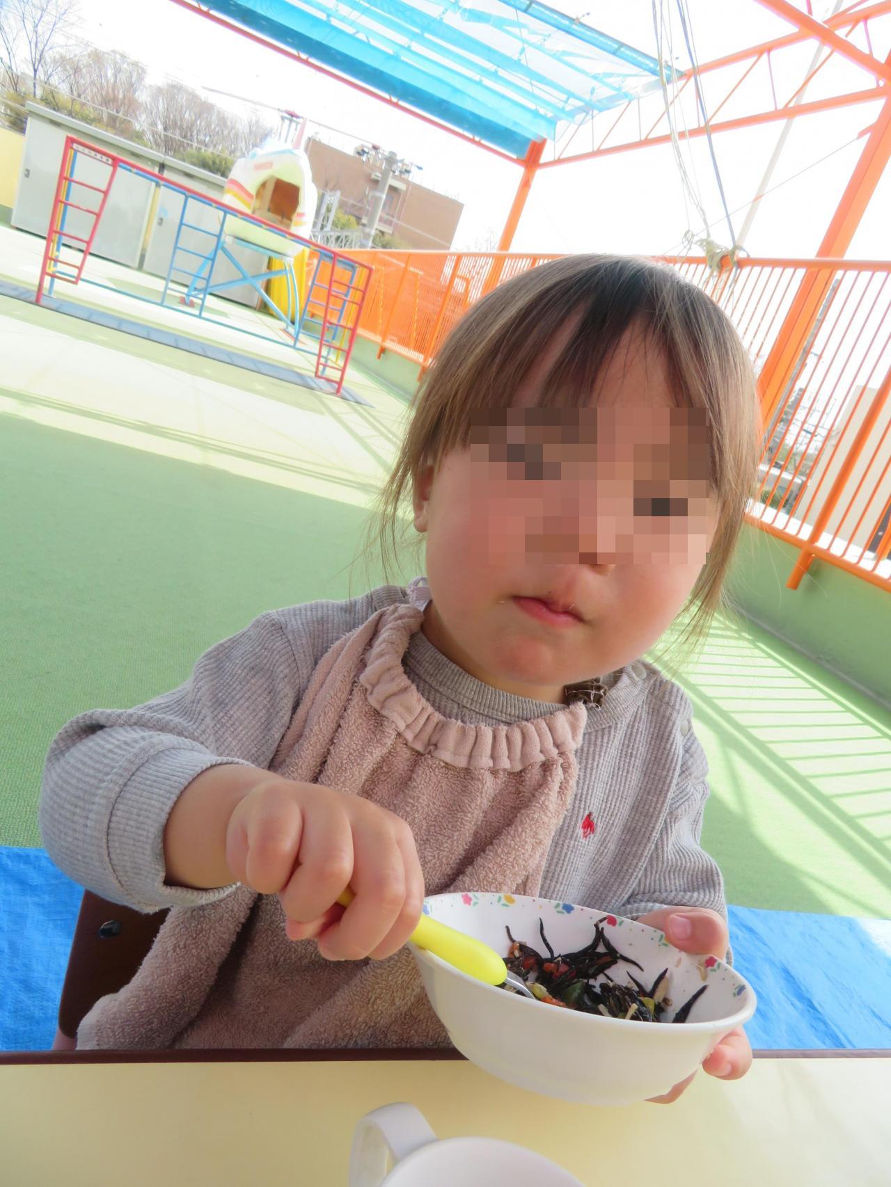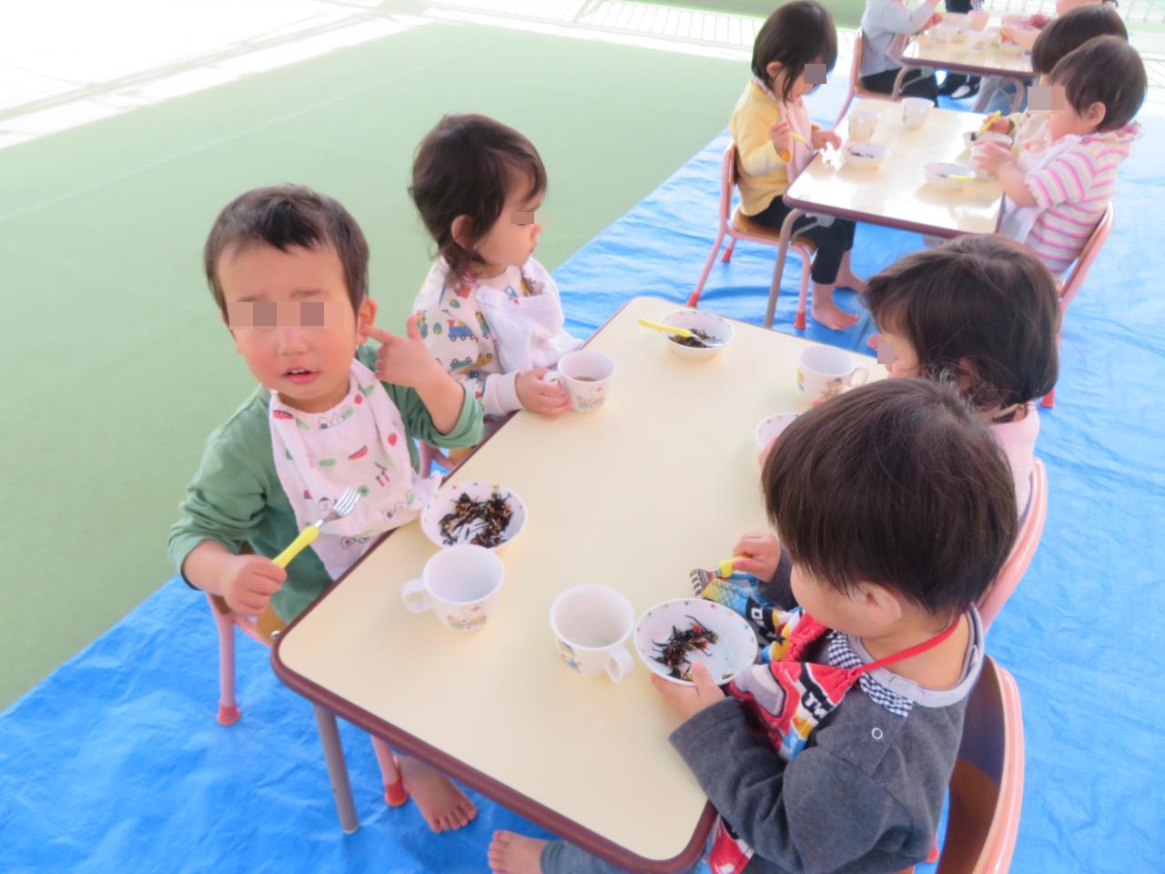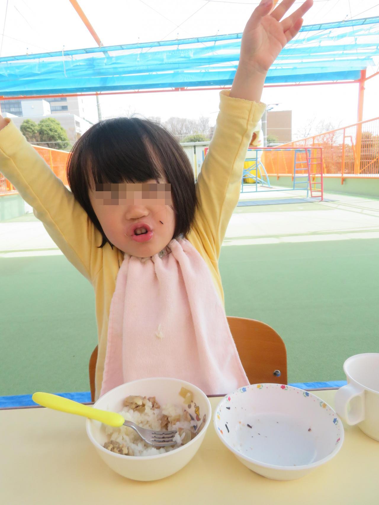 ベランダで給食を食べました!