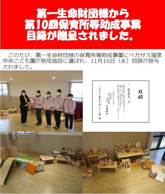 ペガサス福泉中央こども園 第一生命財団様から目録が贈呈されました。.pdf:ダウンロード