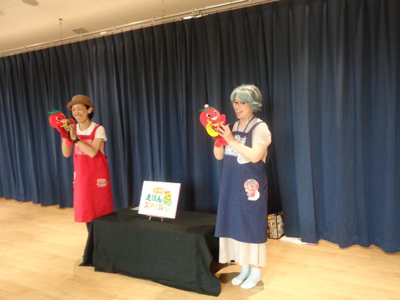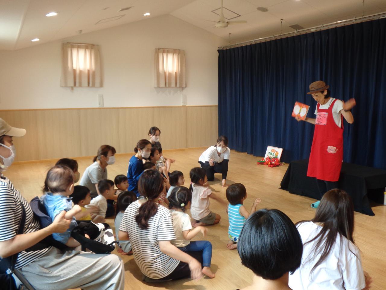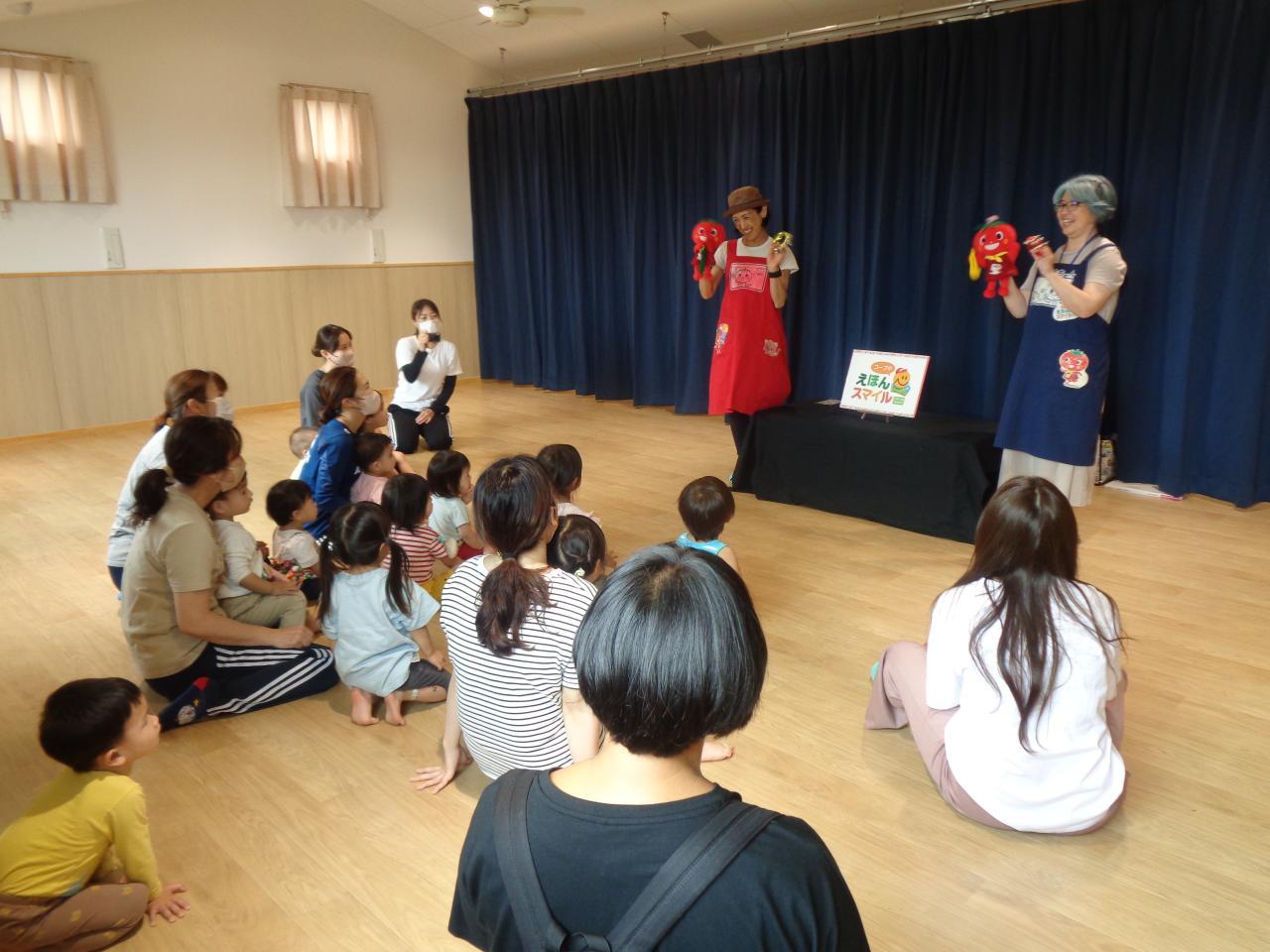 6月30日に、育児講座『コープ共済主催 絵本でスマイルキャラバン隊』がありました。子育て支援室で、親子で交流を深めた後、ペガサス福泉中央こども園の0・1・2歳児クラスのお友だちと一緒に、手遊びや絵本の読み聞かせを見て、楽しいひと時を過ごしました。