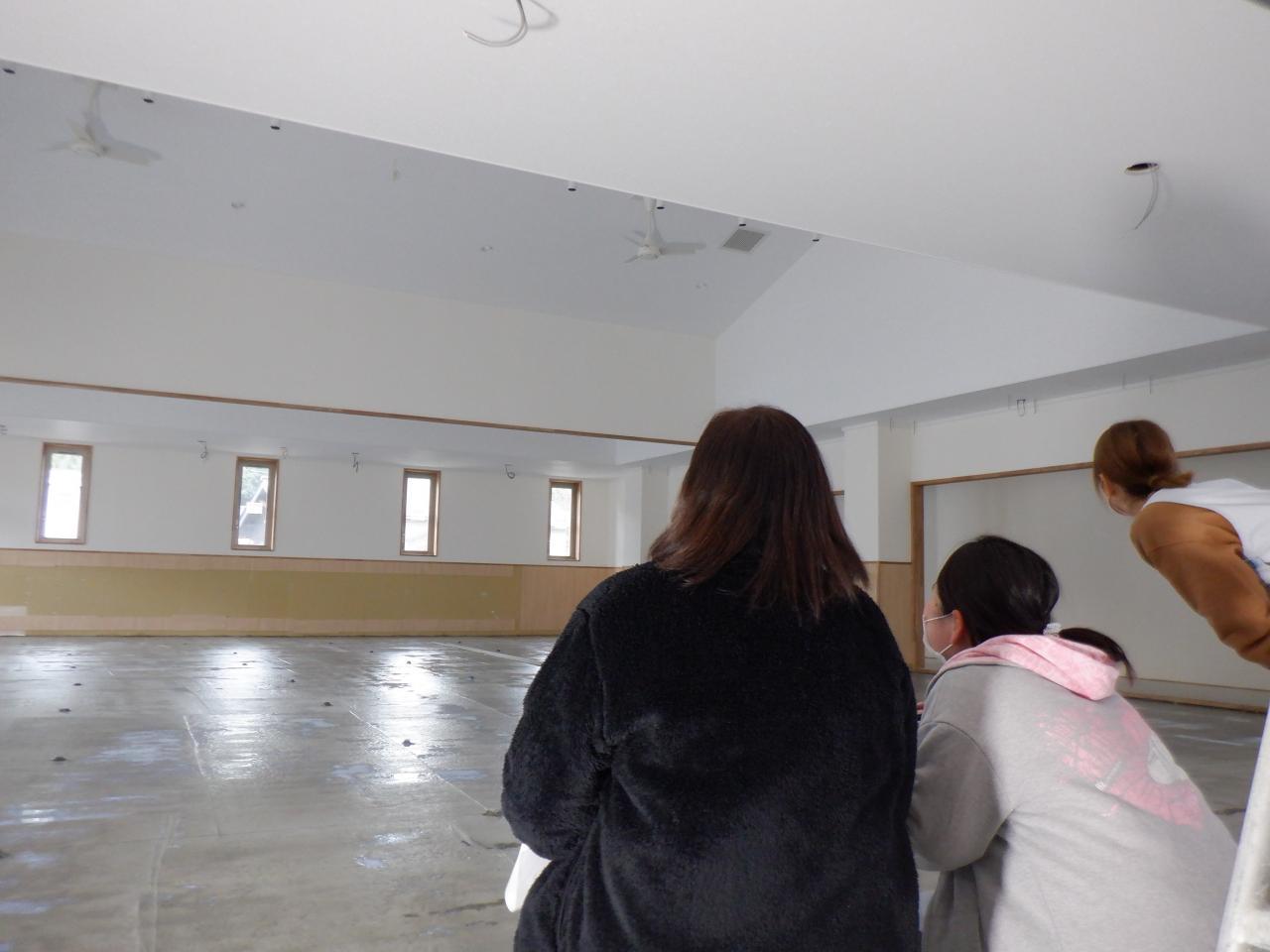 新園舎への引越に備えて、工事中の新園舎の保育室やトイレなど、内部を阪保育園の先生方に見せていただきました😀。