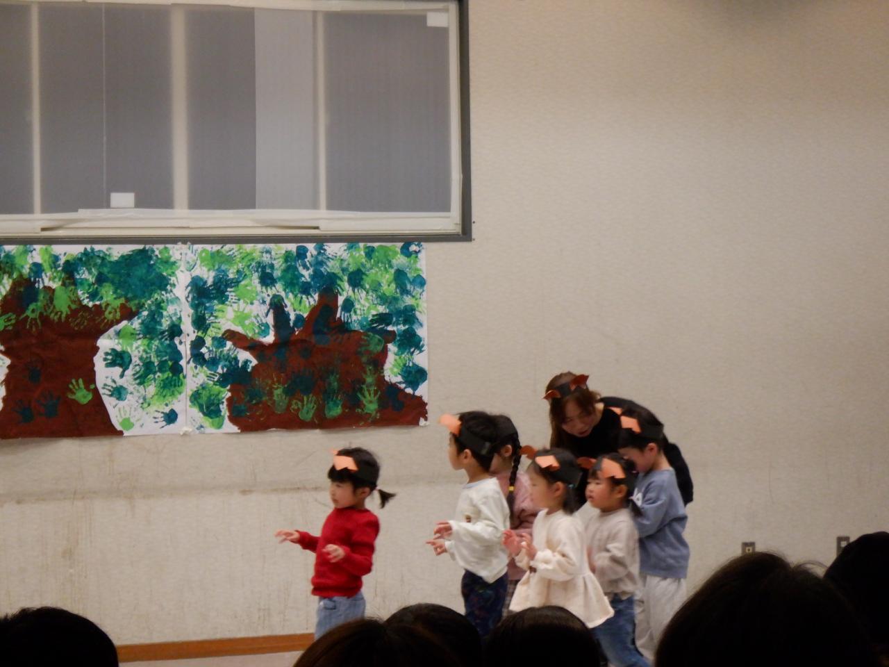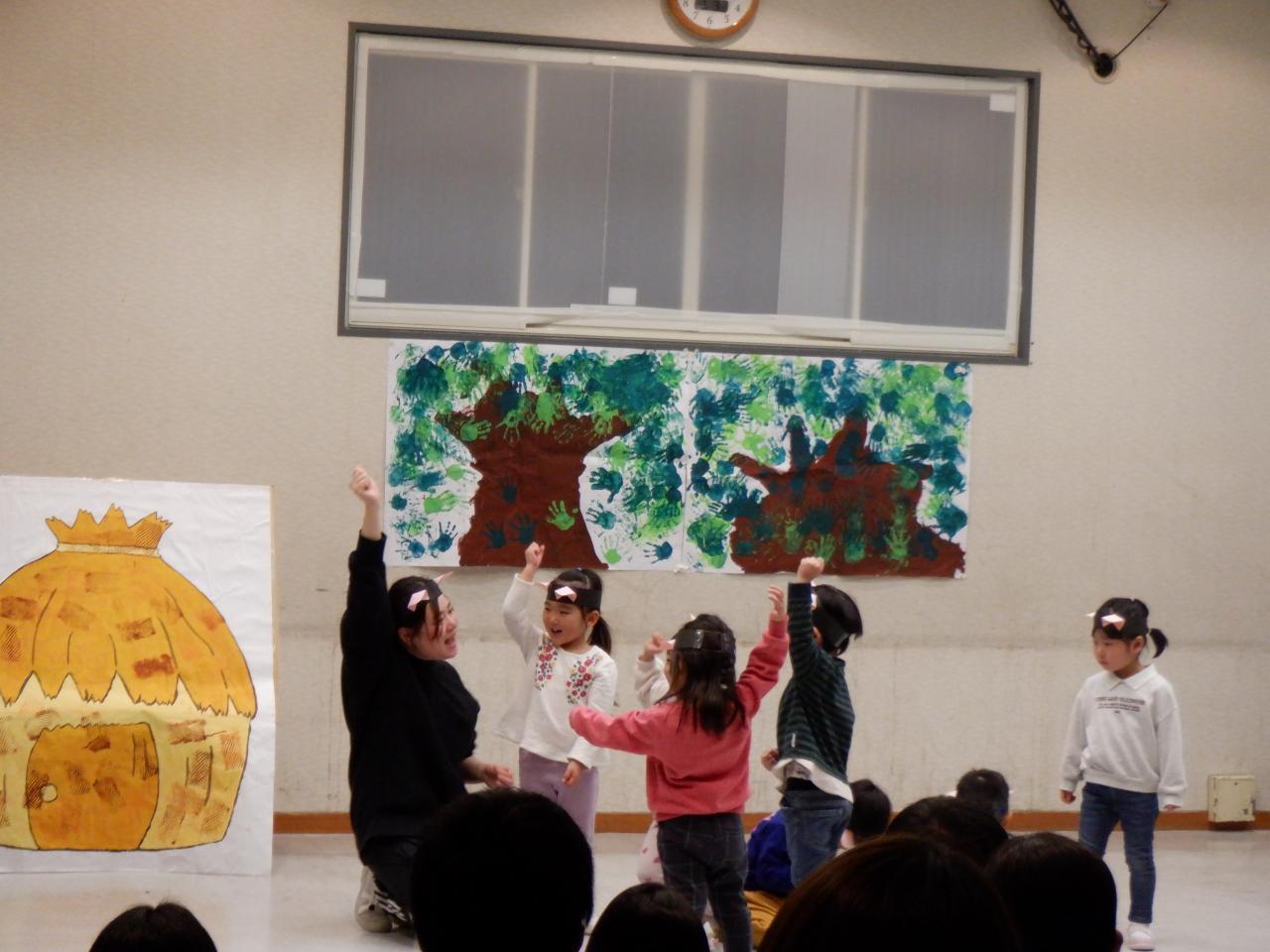 お友だちや先生と一緒にすごしてきた1年間のまとめとして、大好きなお話を通して、一人ひとりが感じ表現する姿をみていただけたのではと思います。