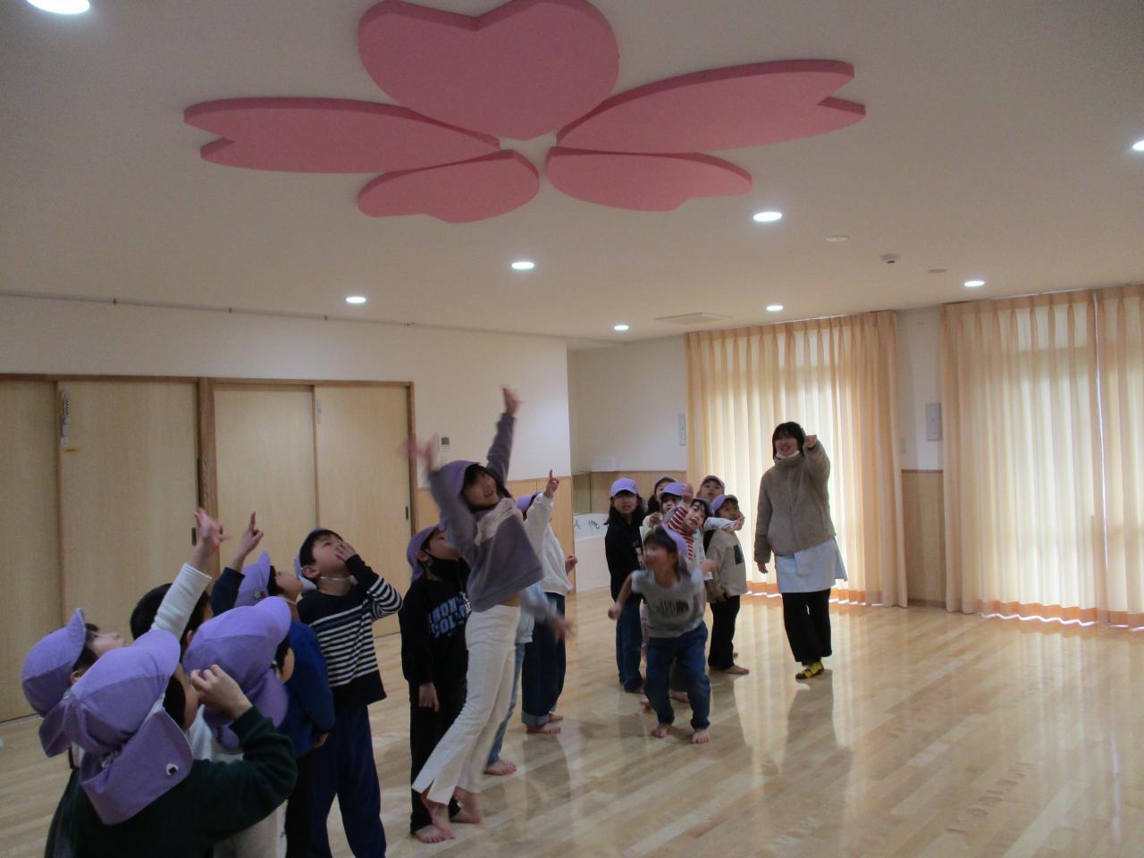 2階「さくらホール🌸」の天井を見て、「手が届きそう!」とジャンプ❗