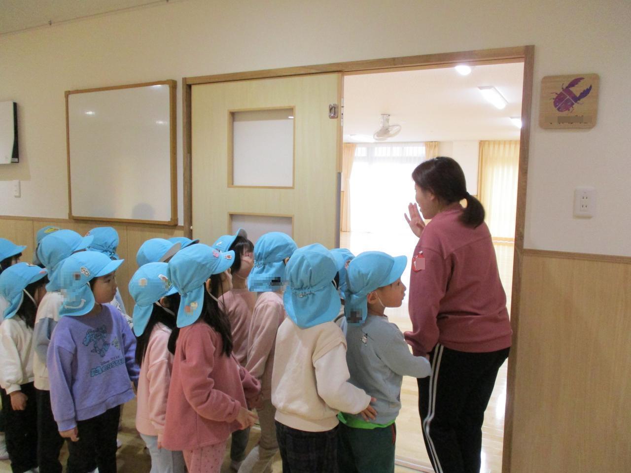 その後に、2歳児から5歳児クラスの子どもたちが園舎の見学に行きました。