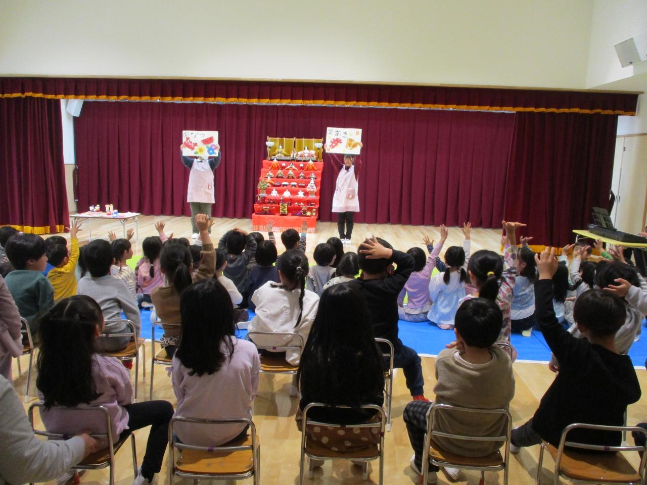 最後は幼児クラスのお友だちと『ひな祭りクイズ大会』です🙌