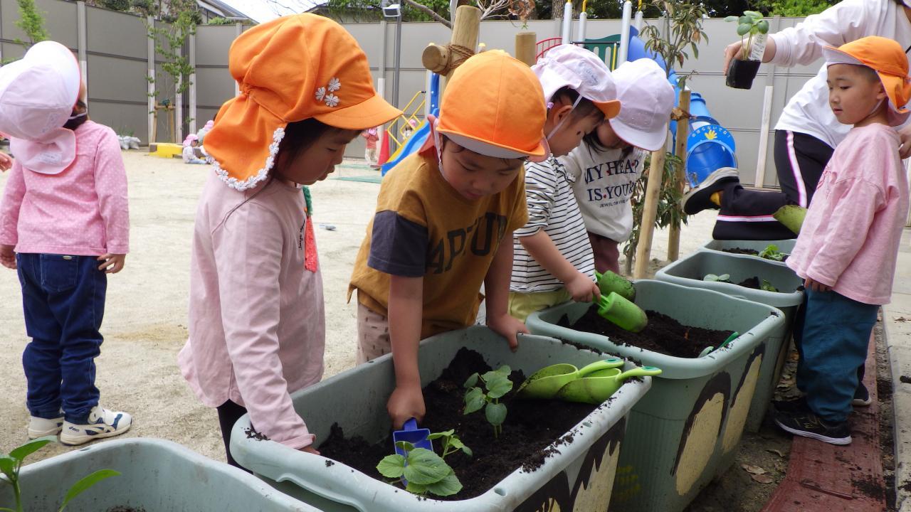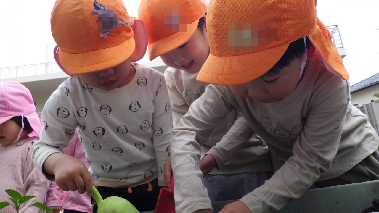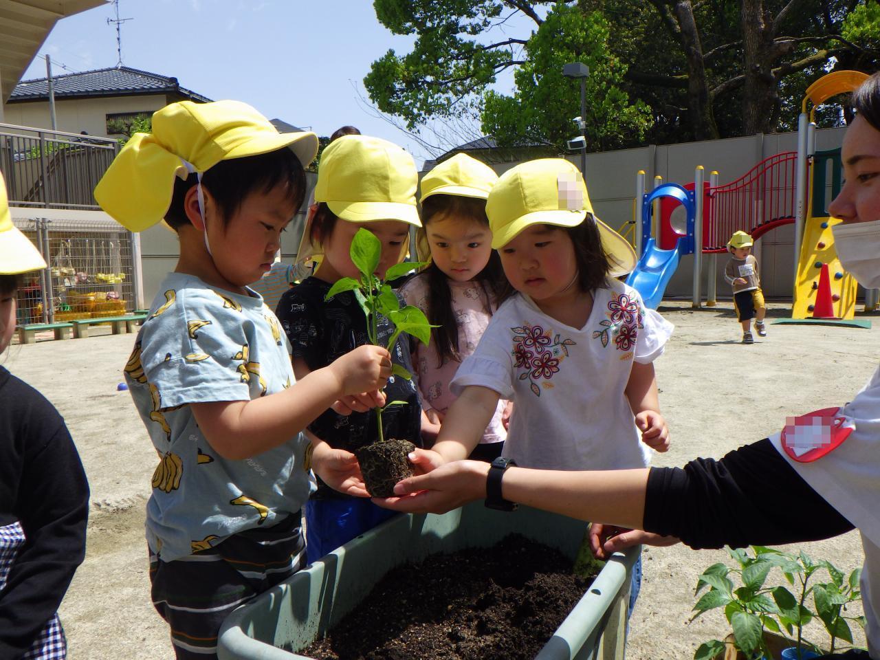 これから、子どもたちみんなでお水をあげたり声をかけて、苗のあかちゃんのお世話をしていきたいと思います。どんどん大きくおいしくな~れ💕