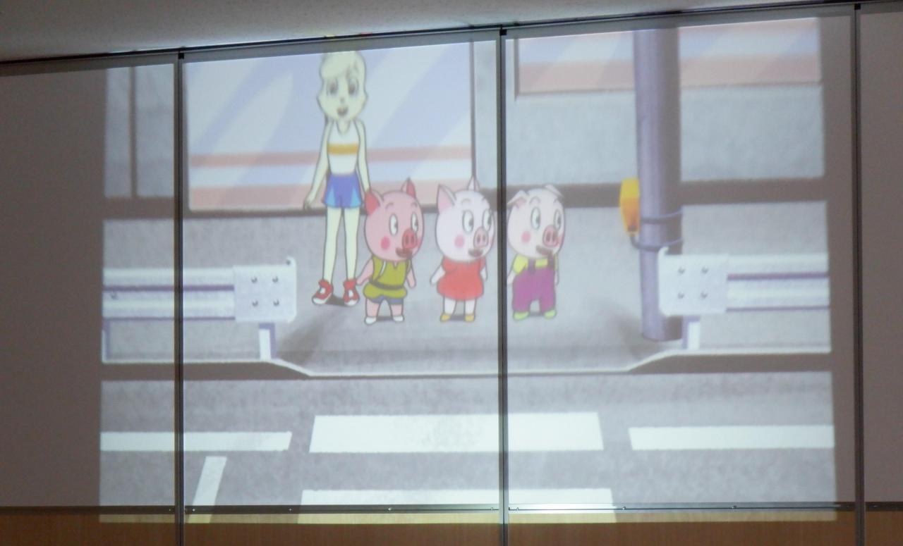 『3びきの子ぶたの交通安全🐷』では子ぶたちゃんが、道路の歩き方や渡り方、道路標識の意味をわかりやすくお話でした。